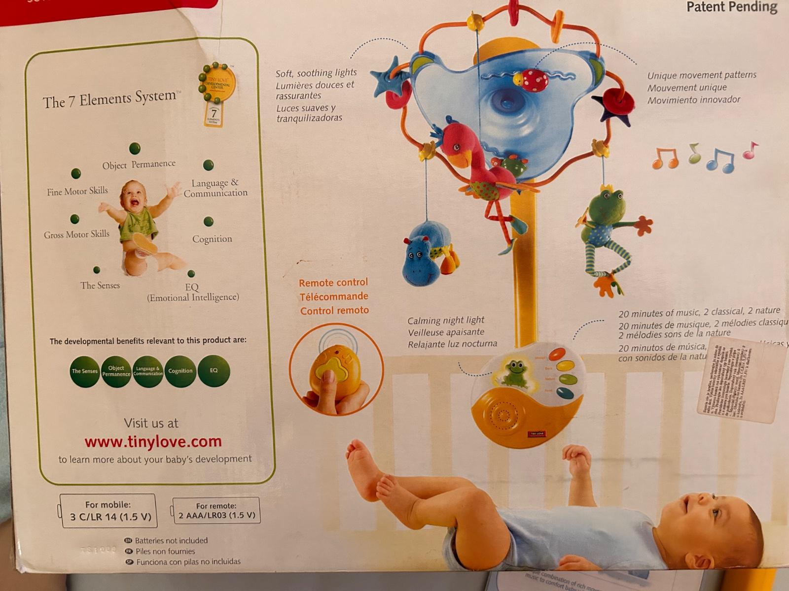 Krásny kolotoc na diaľkové ovládanie nad postieľku. original krabica. Hra 4 melódie, ktoré upokoja babatko.