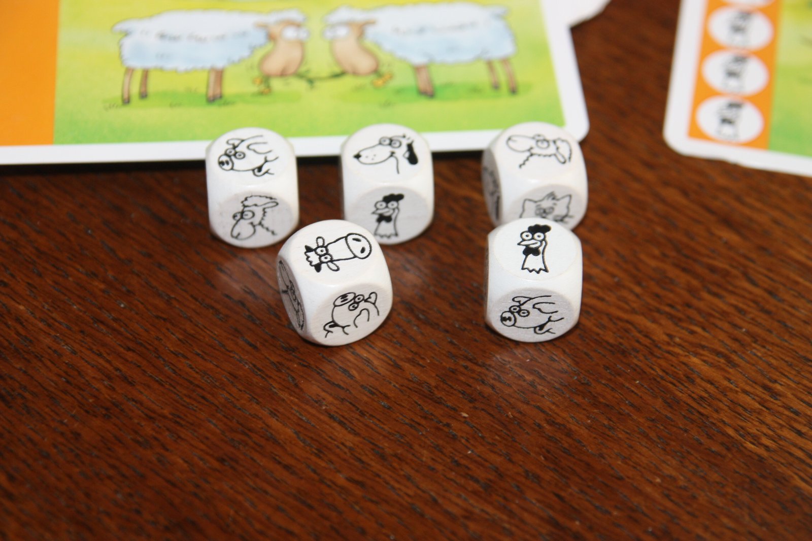 Hráči hádžu kockami a snažia sa na 3 pokusy vytvoriť kombináciu na karte, aby ju získali.