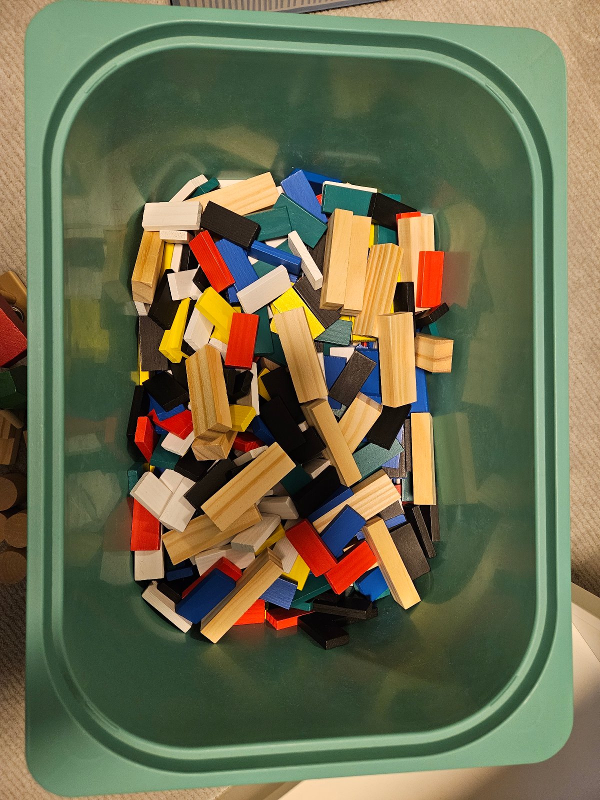 - stavebné kocky rôznych tvarov a farieb - 14e