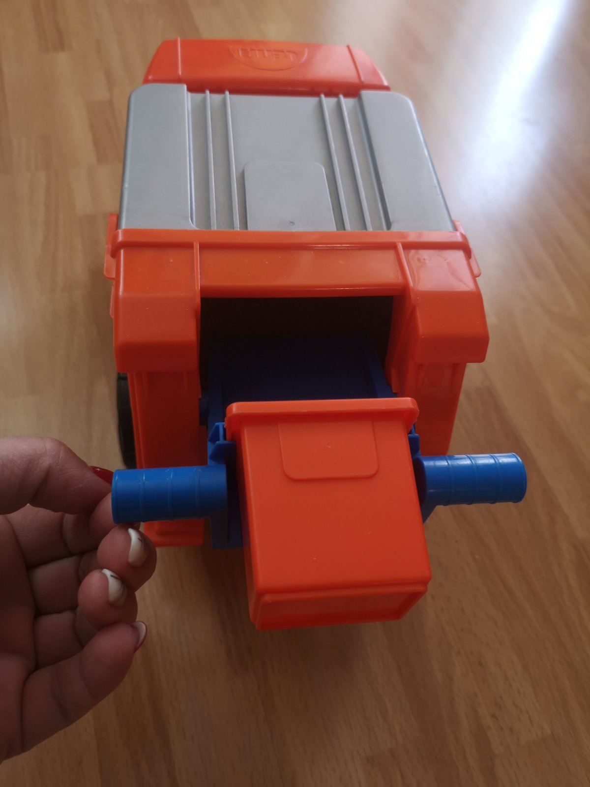 LENA smetiarske auto z kvalitného plastu a veľmi pevnou stavbou o veľkosti 29x15x16cm. Je plne mechanicky funkčné.