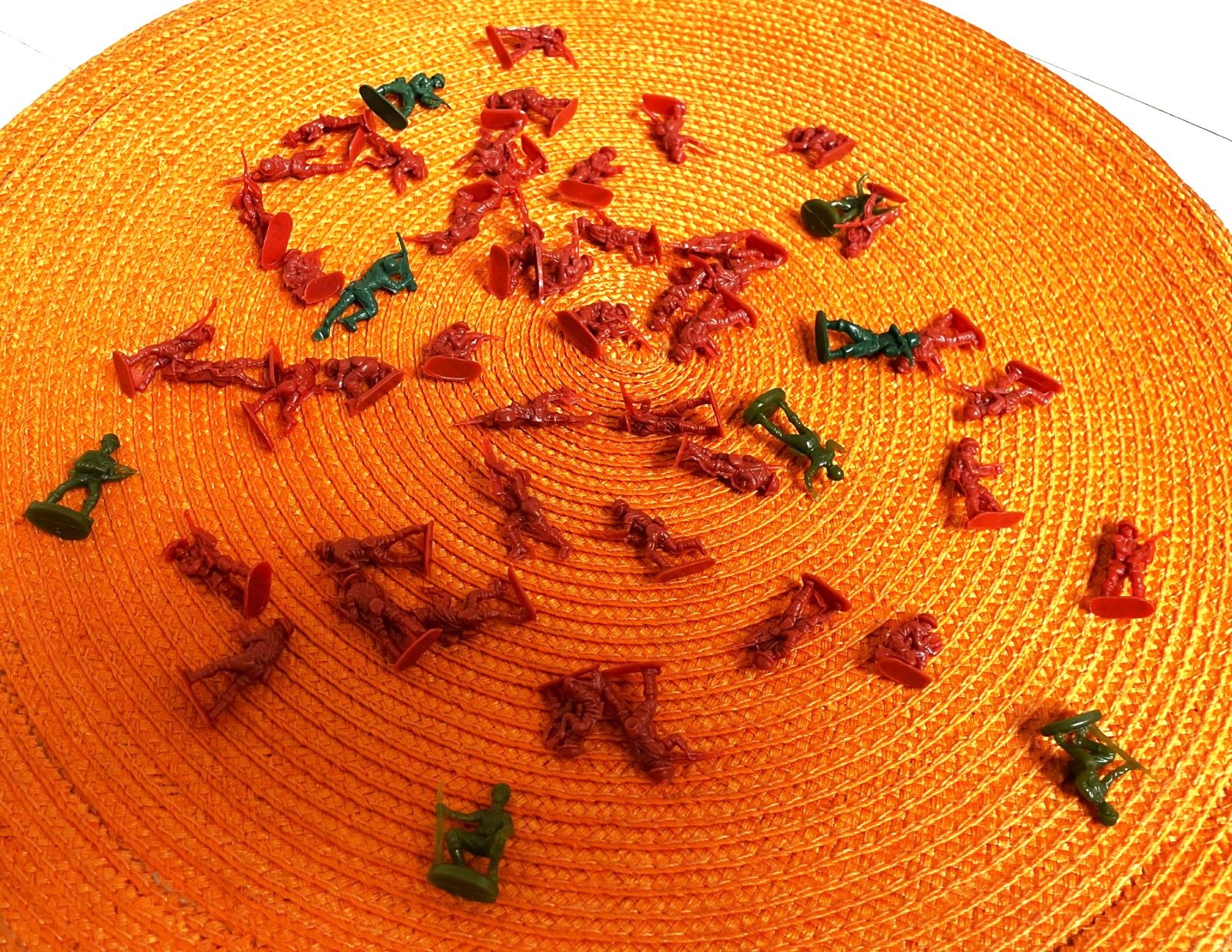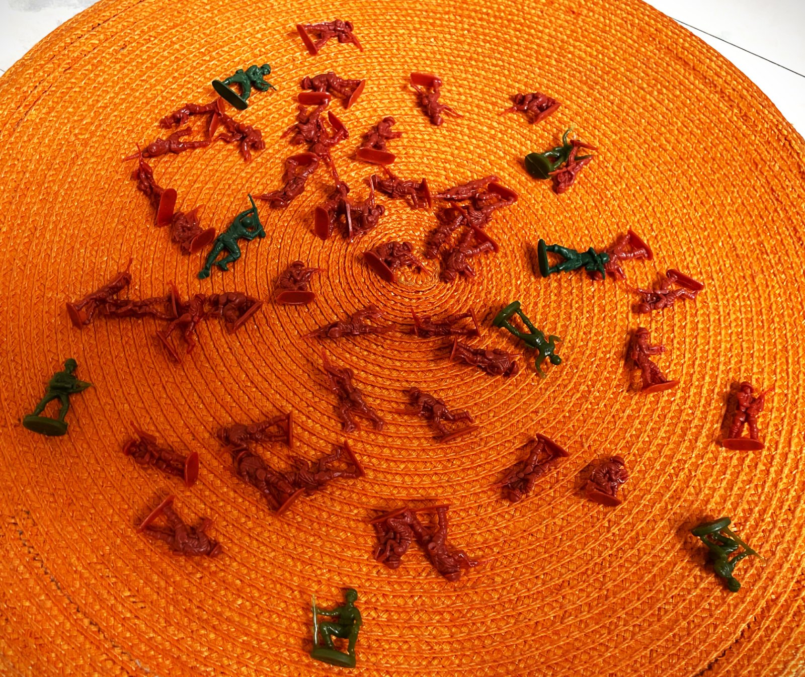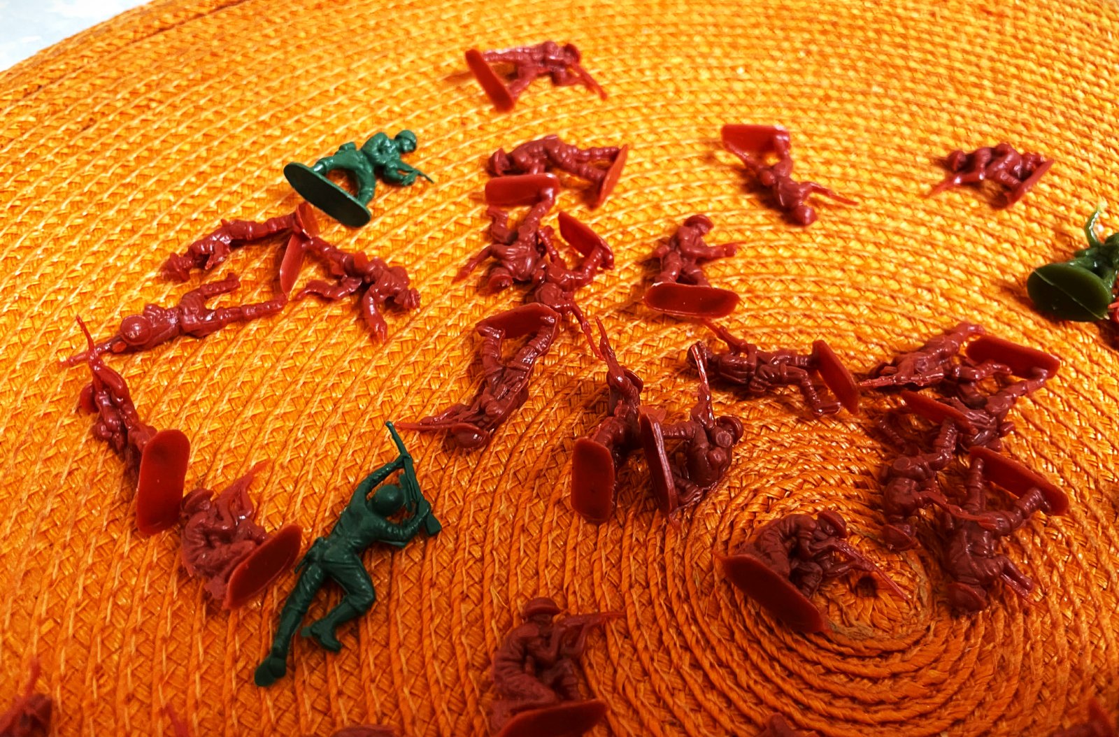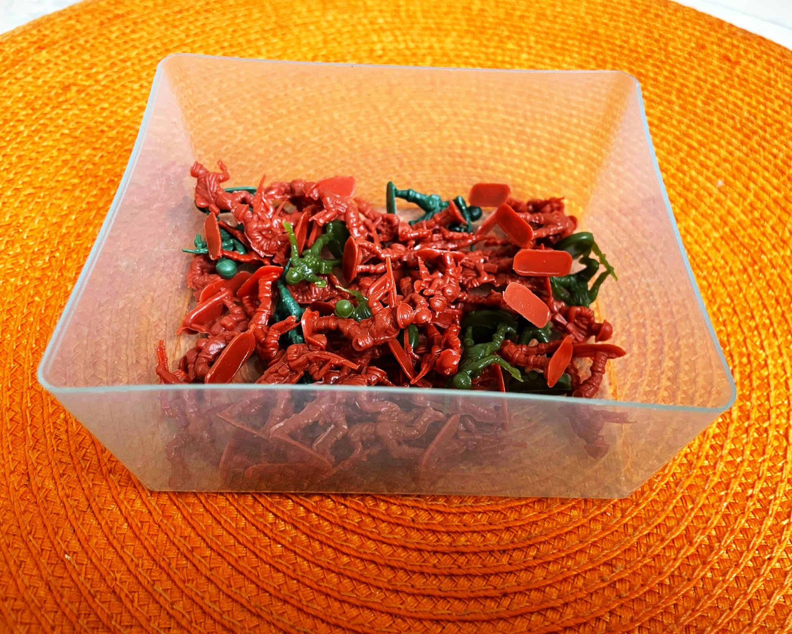 53 ks plastových vojačikov v rôznych bojových pozíciách, výška = 2 cm,pozri aj