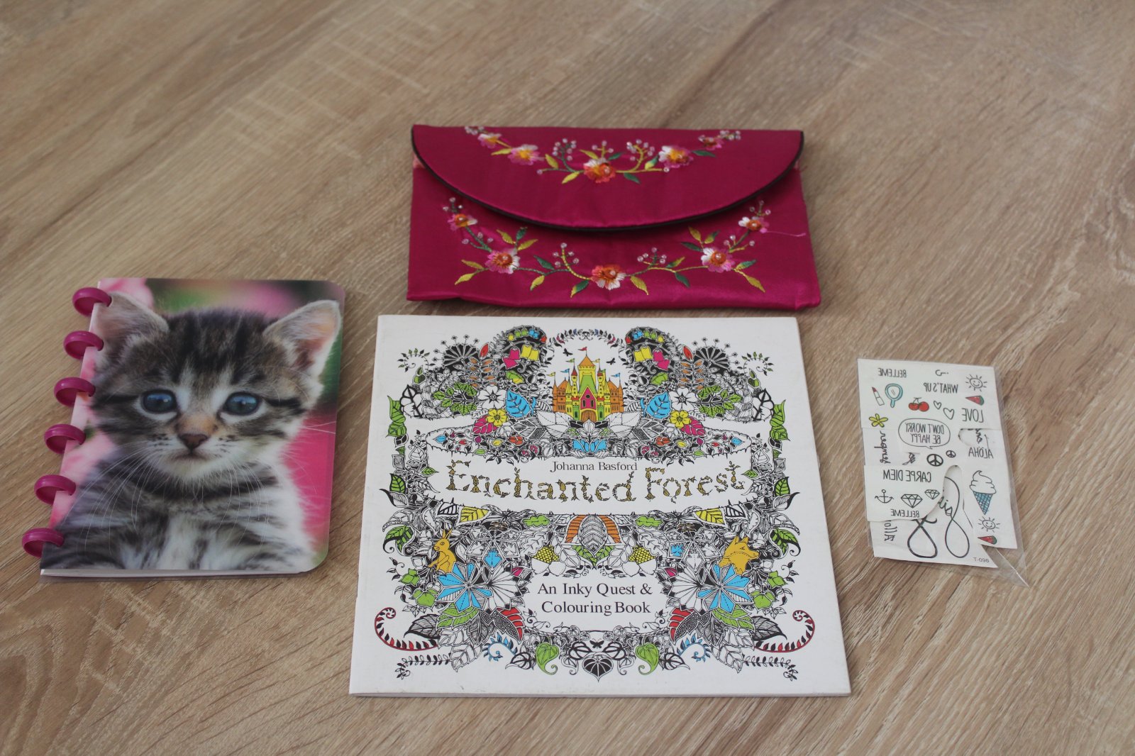 Vo výbornom stave. Na predaj všetko, čo vidíte na fotkách: colouring book, poznámkový zošit, tetovačky a vrecko na drobnosti.