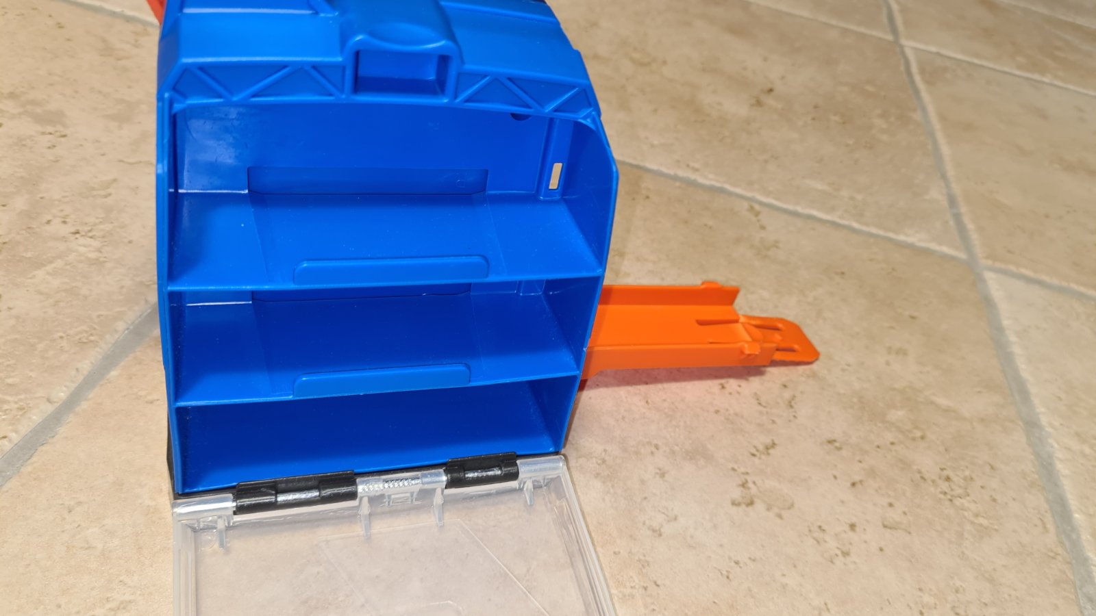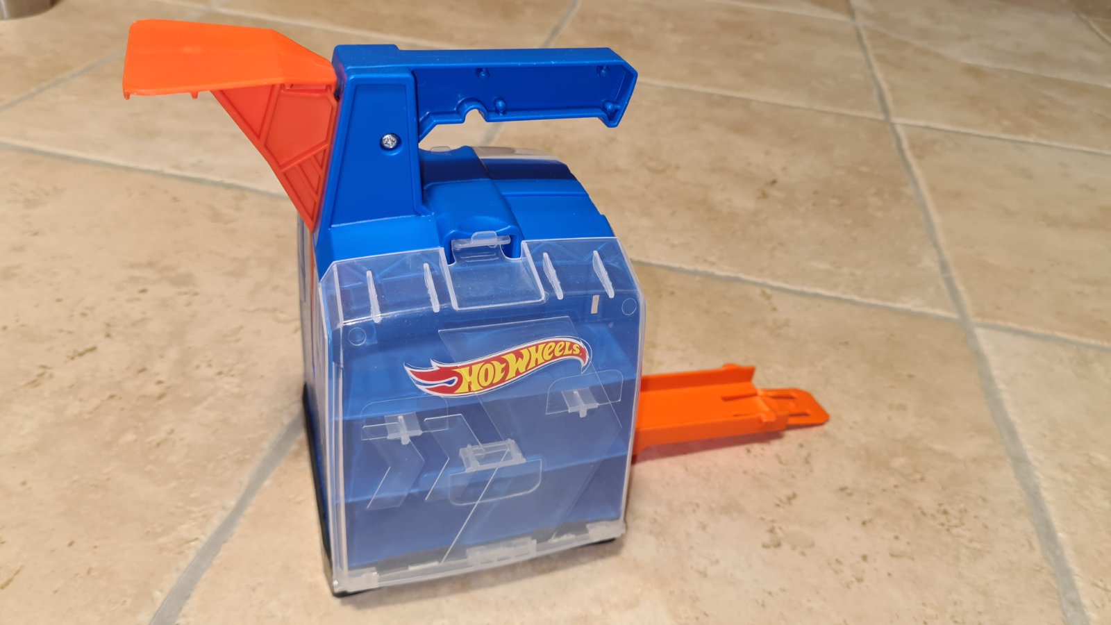 Odpaľovacia rampa Hot wheels, ktorá slúži aj ako prenosný kufrík na 6 autíčiek typu angličák.