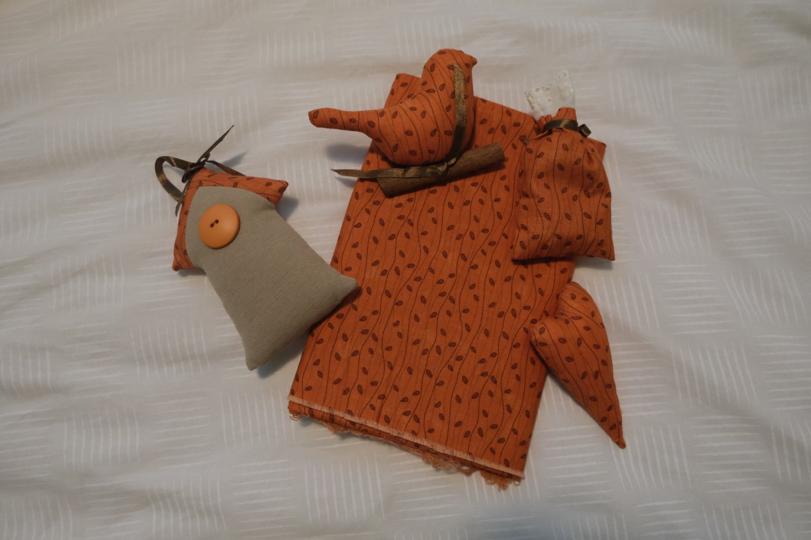 🛒 SET = ručne šité látkové dekorácie / levanduľové vrecúško, domček, srdce, vtáčik, látka