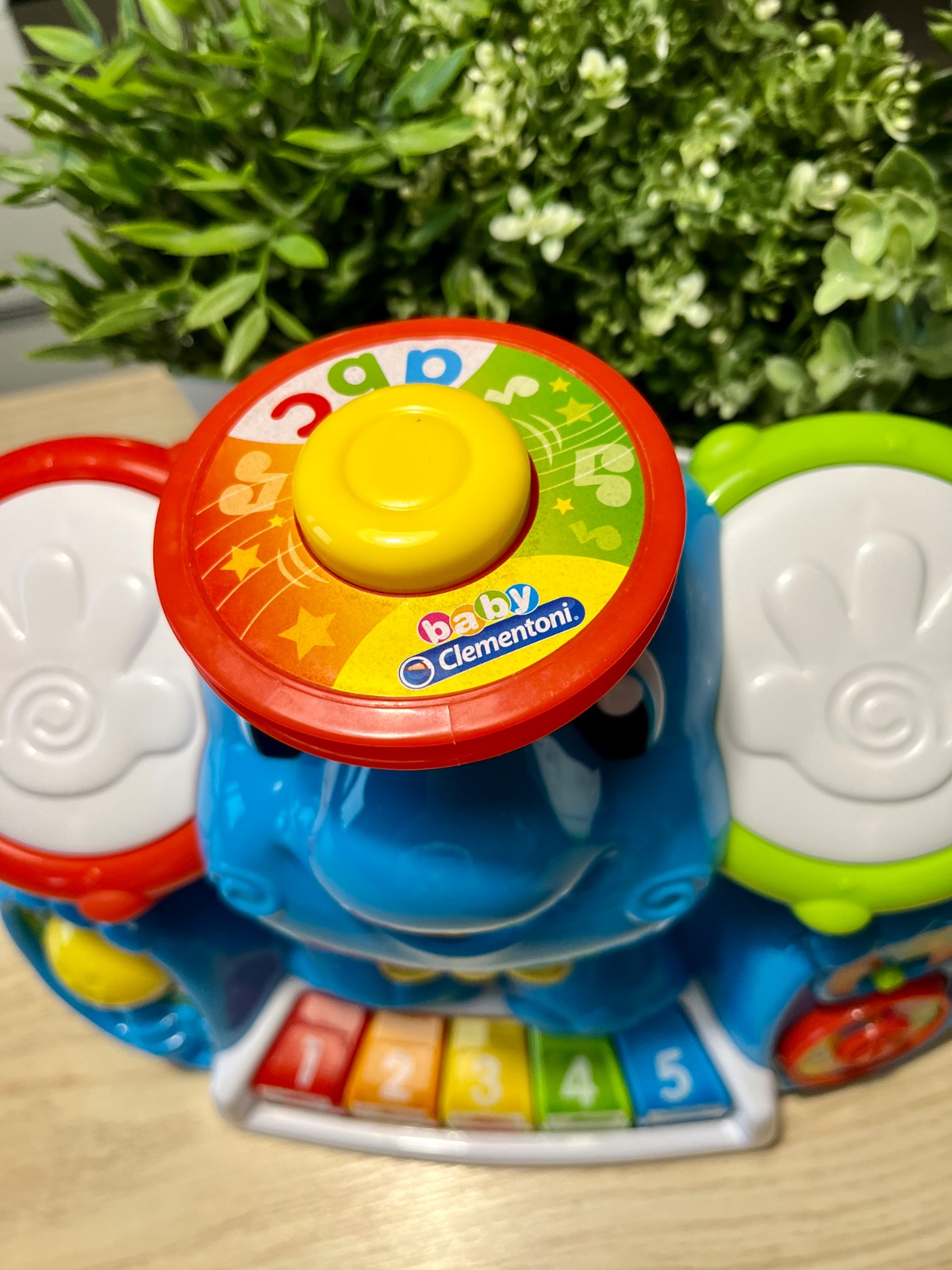 Predam takmer nehraneho interaktivneho slonika. Mali sme viac takychto hraciek a tato nezaujala. Je v top stave, nelepky neporusene. Da sa pouzivat v 3 jazykoch: SK, CZ a HU + anglicky mod. Svieti, spieva, rozprava, vydava zvuky zvierat, bubnuje… + kolecko na nozicke funguje ako hrkalka.