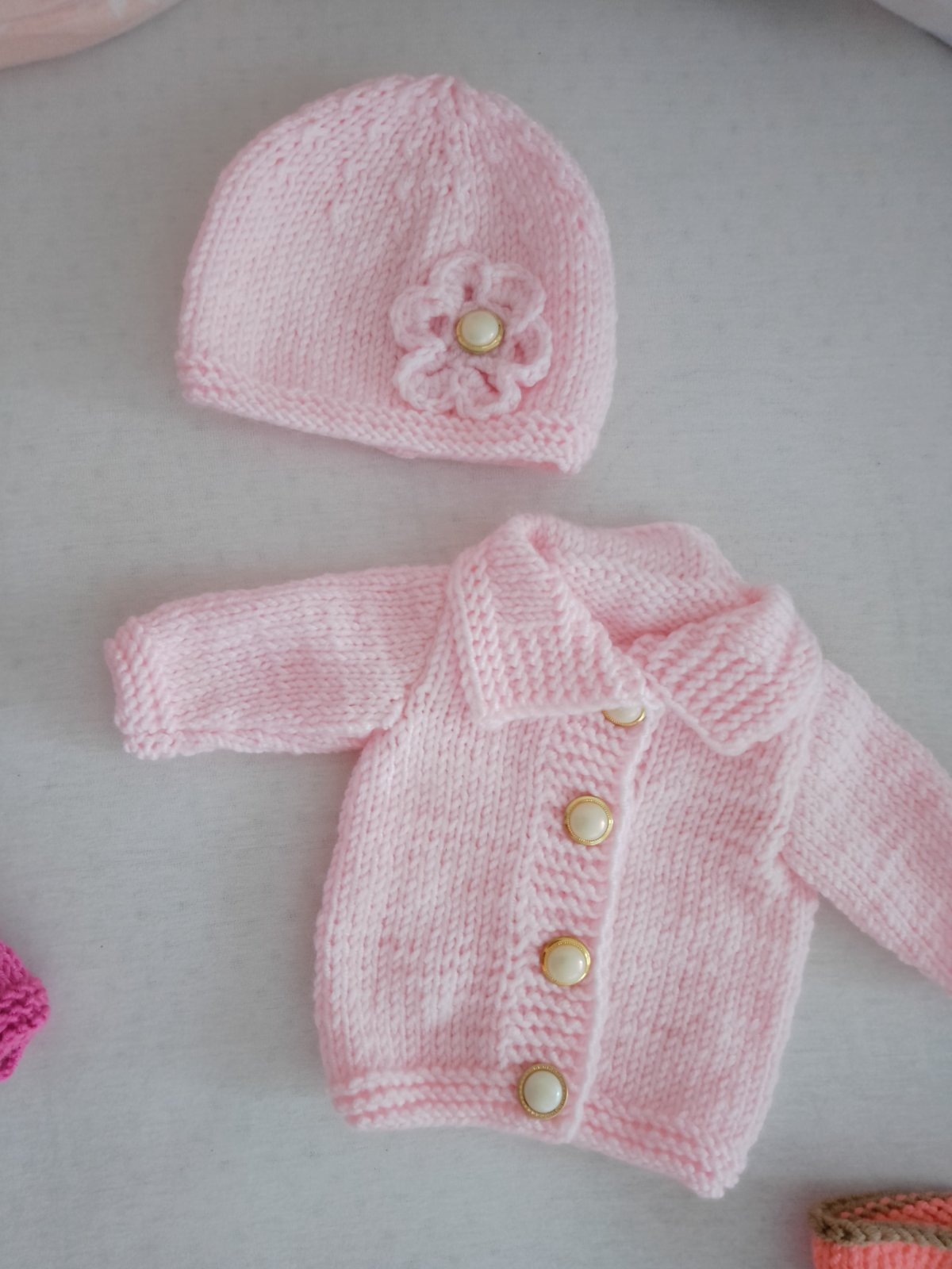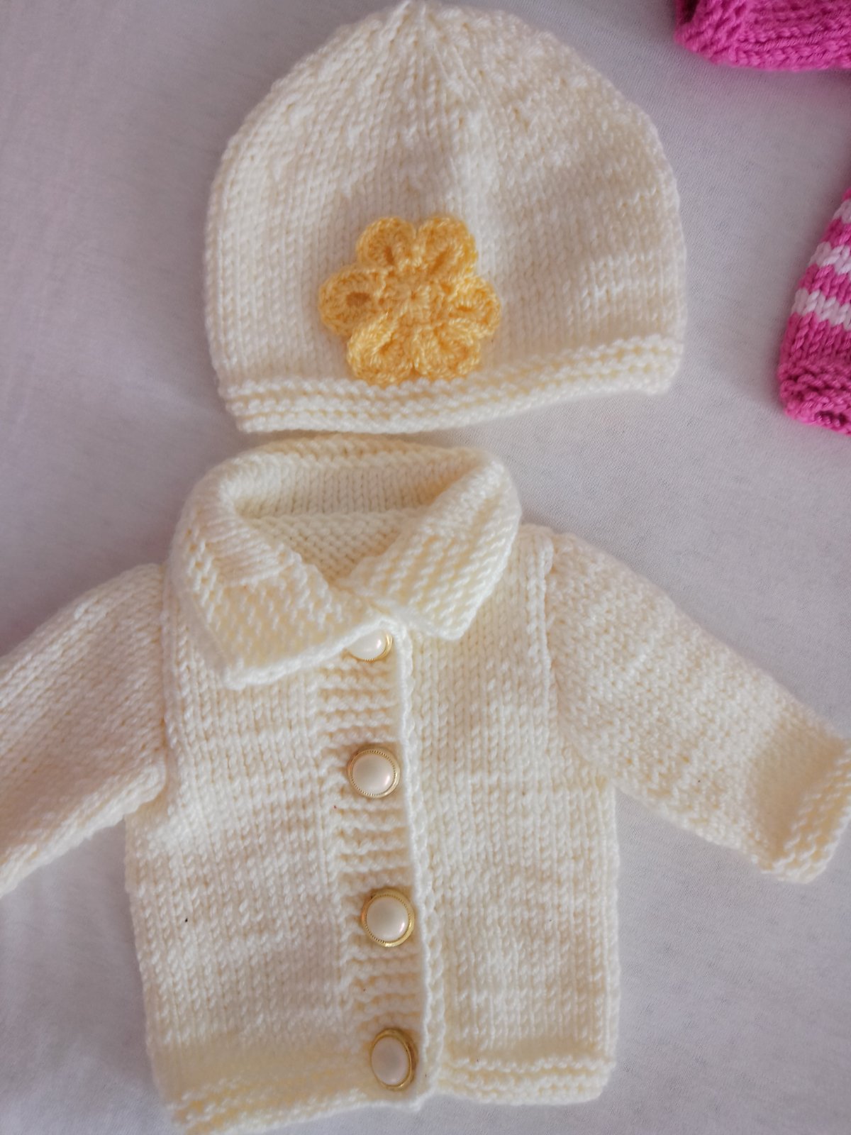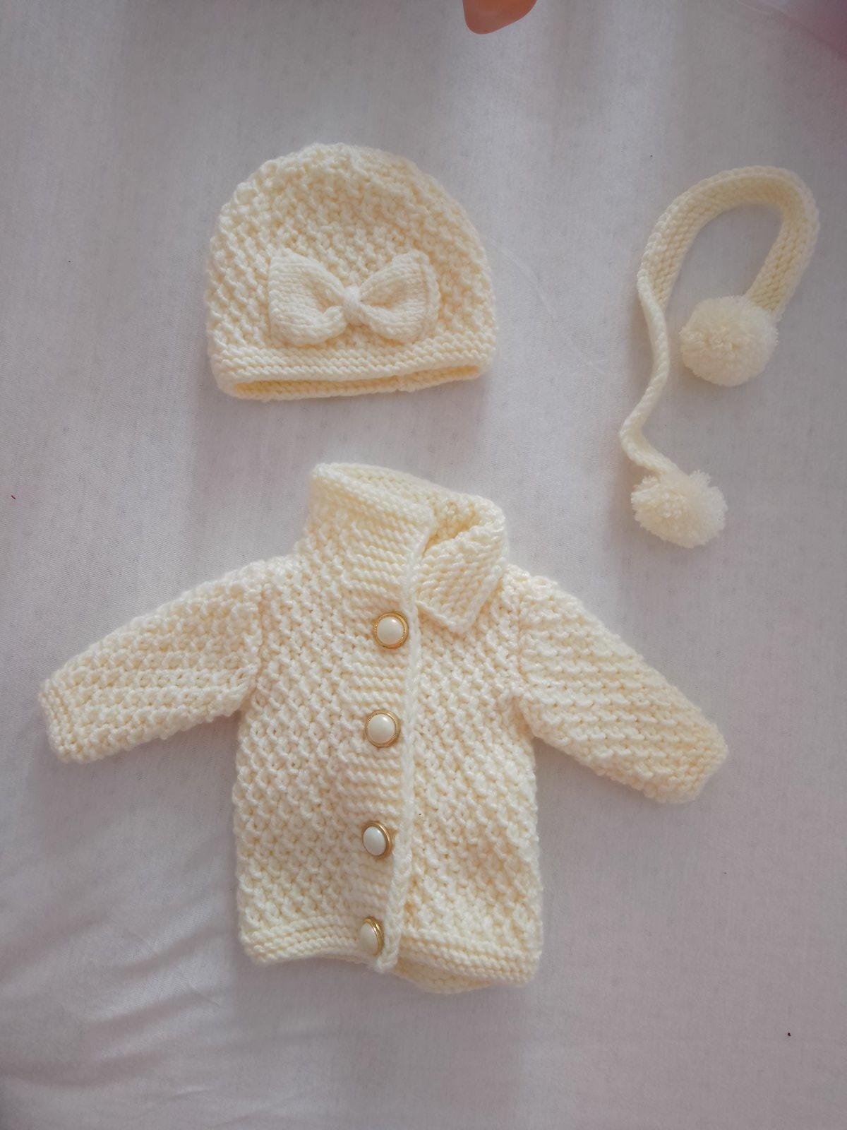 set/štrikovaný svetrík a čiapka. Svetrík je na gombičky.