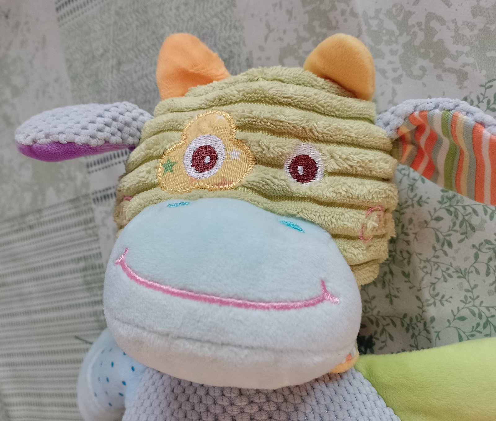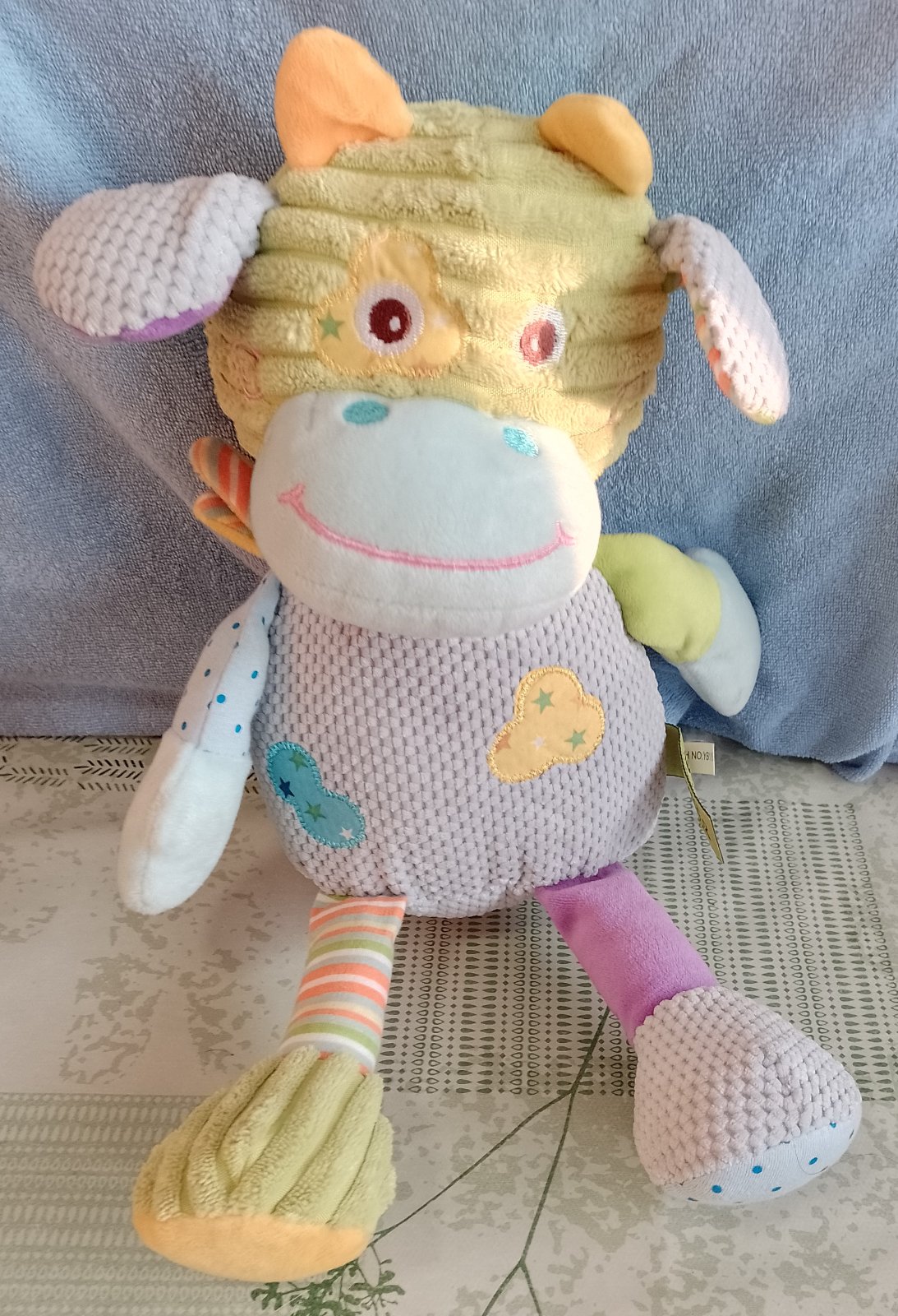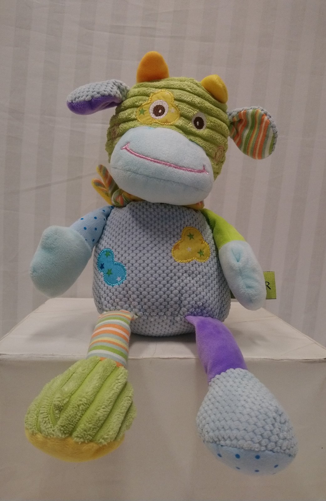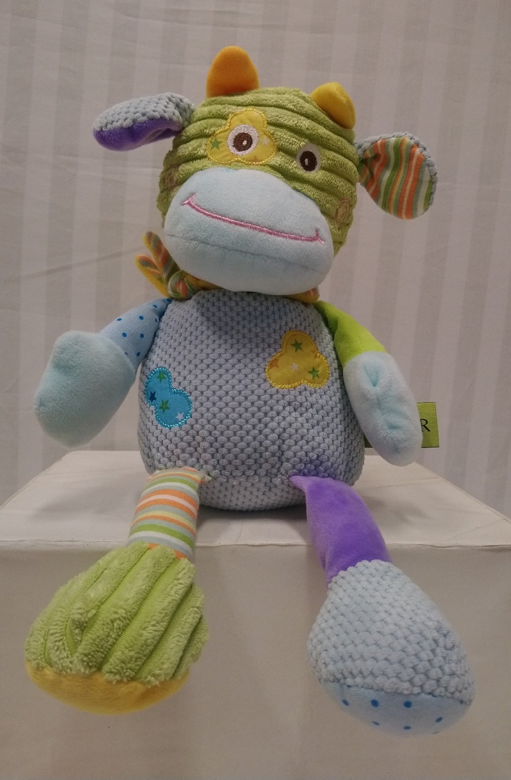 plyšový farebný hrkajúci býček sa vďaka svojej farebnosti môže stať úžasným kamarátom pre veľkých aj maličkých.