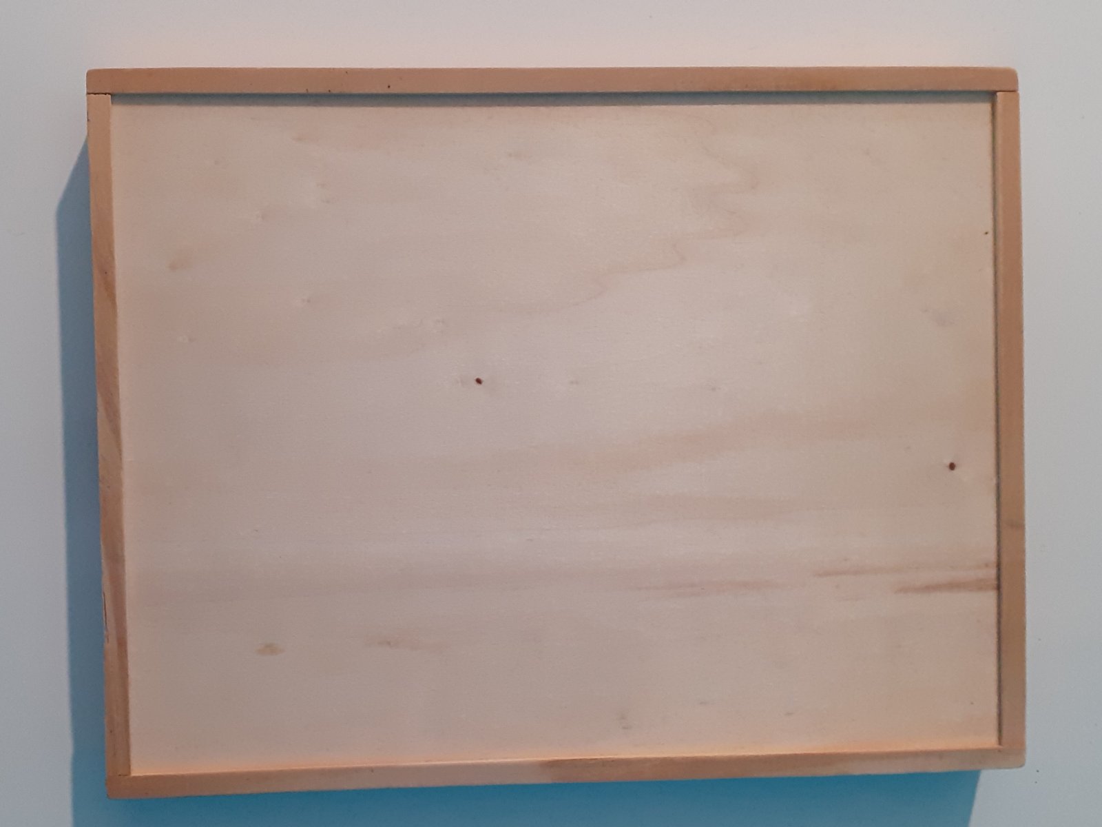 Návod pokrčený a mierne zničený. Jeden roh tabuľky je lepený. Drevený rámik tabuľky je pokreslený fixami - nešlo to zmyť.