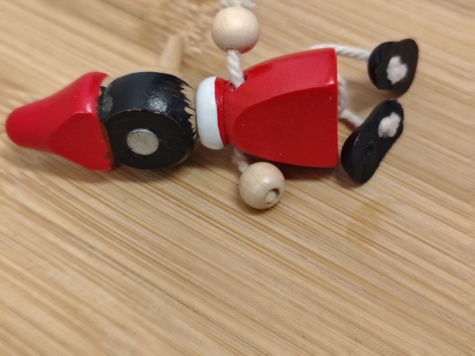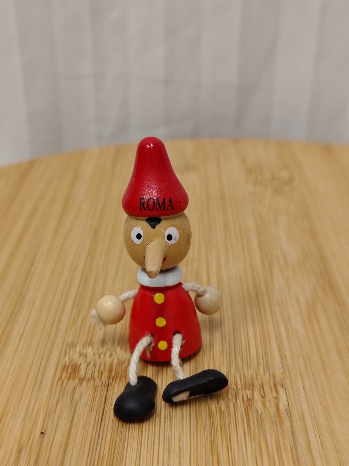 Drevený Pinocchio ROMA, magnetka, ručne malovaná, ide o krásnu drevenú magnetku Pinocchia, zakúpenú priamo v Taliansku (nápis ROMA na čiapke). Ide o tradičné remeselné spracovanie, ktoré je oveľa hodnotnejšie než bežné plastové suveníry. Magnetka má ohybné nohy a ruky, na kovovom povrchu (chladnička, zárubňa) pôsobí, akoby na ňom sedela. Skvelý kúsok pre zberateľov magnetiek alebo ako milý darček pre milovníkov rozprávok a talianskej kultúry.