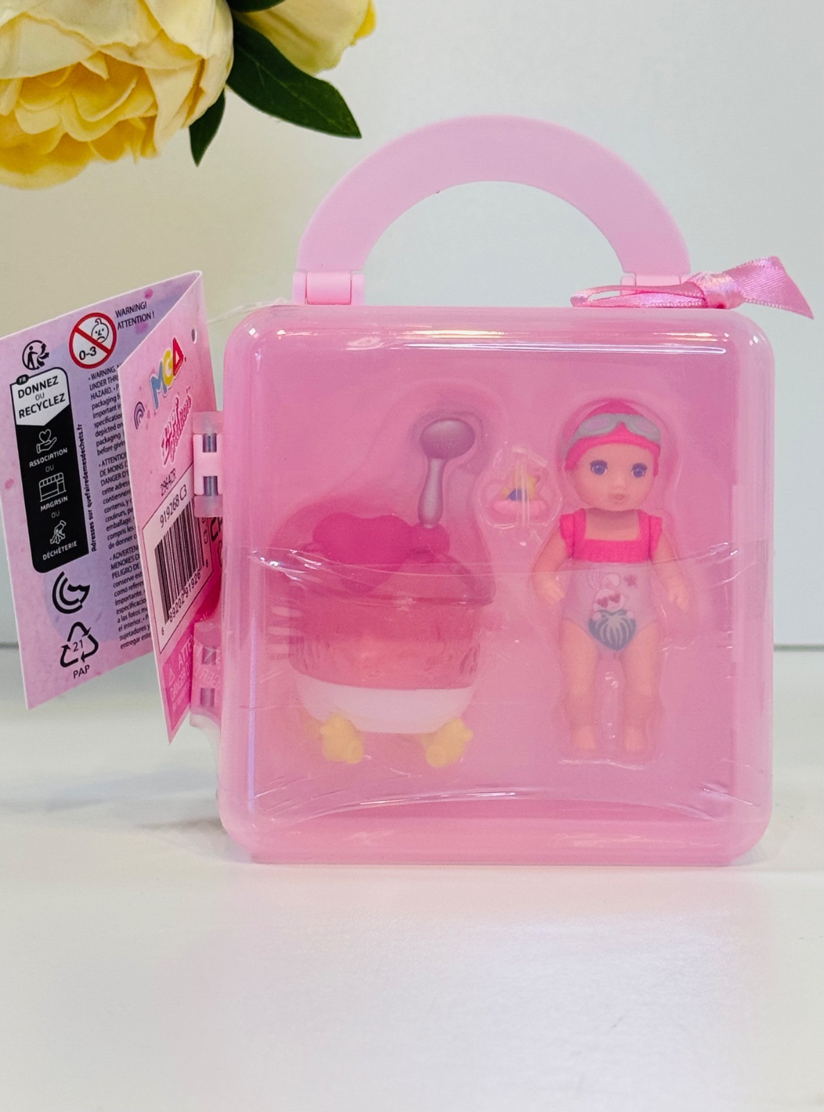 Je čas vyraziť na prieskum s BABY born MINIS! Súčasťou je bábika bábiky, vaňa s vankúšom v tvare srdca, sprchovací kút a roztomilá gumená kačička. Táto hracia sada BABY born MINIS obsahuje rozkošnú 6,3 cm bábiku v roztomilých plavkách s plaveckou čiapkou a okuliarmi. Má pohyblivú hlavu, ruky a nohy pre realistickú hru s detailmi, ktoré sa očakávajú od našej tradičnej rady BABY born, ale je miniatúrna pre nekonečné možnosti. Obsahuje bábiku, vaňu, gumenú kačičku a opakovane použiteľné puzdro na prenášanie.