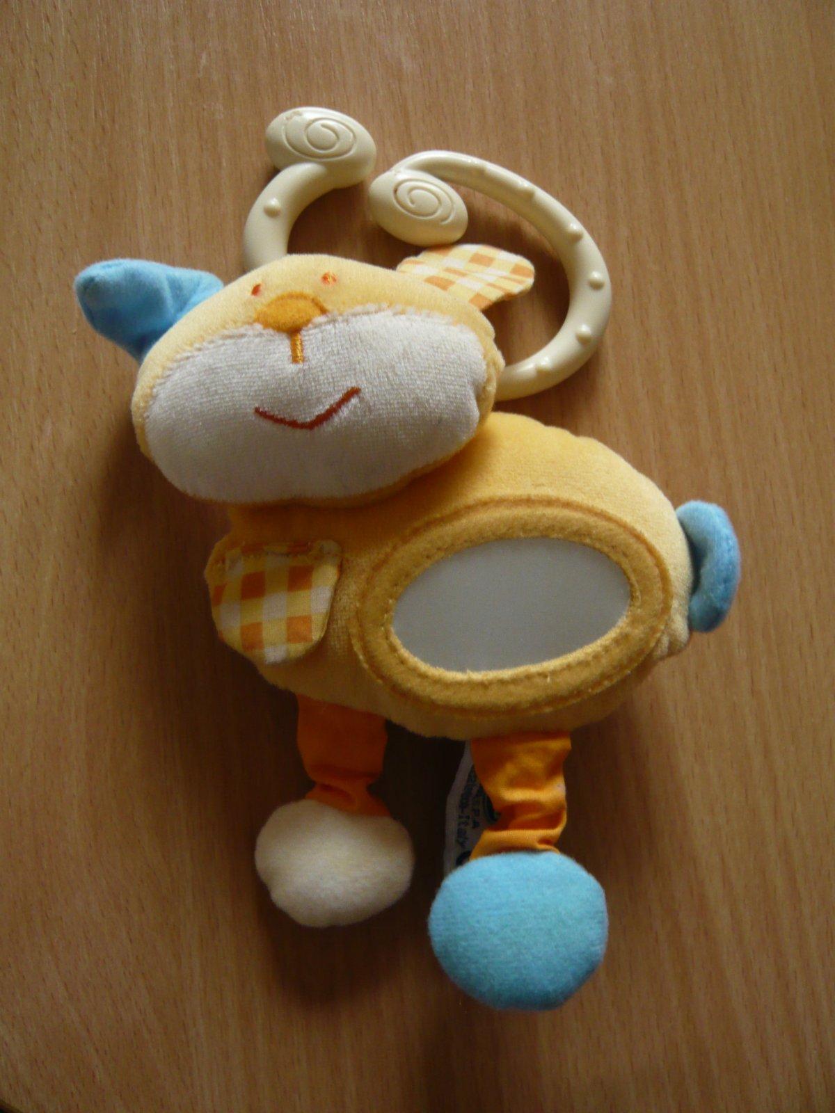 Predám hračku zn Chicco, ktorá sa dá zavesiť. Má zakusnuté na krúžku (viď foto). Hrká a má na brušku "zrkadielko" ktoré detičky zabaví, ušká jej šuštia, nožičky sa dajú trošku naťahovať. Cena je bez poštovného a balného, v KE možný osobný odber.