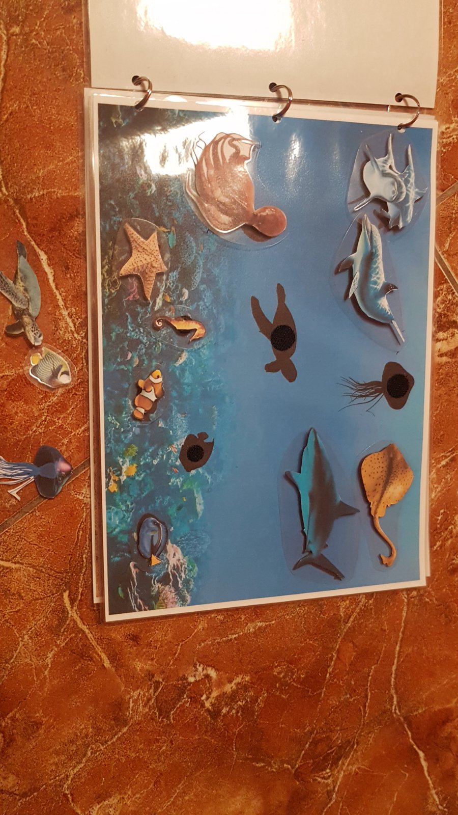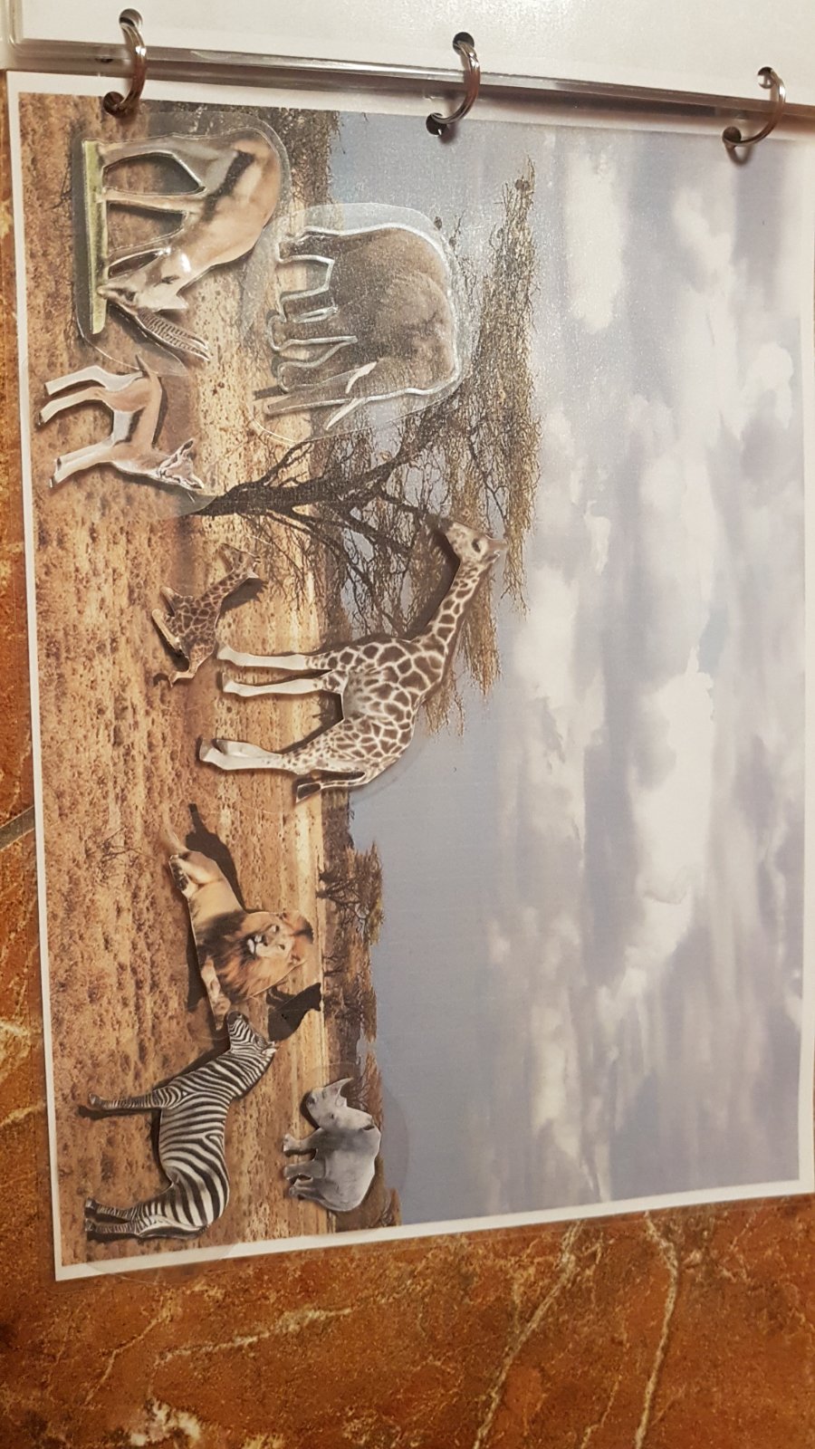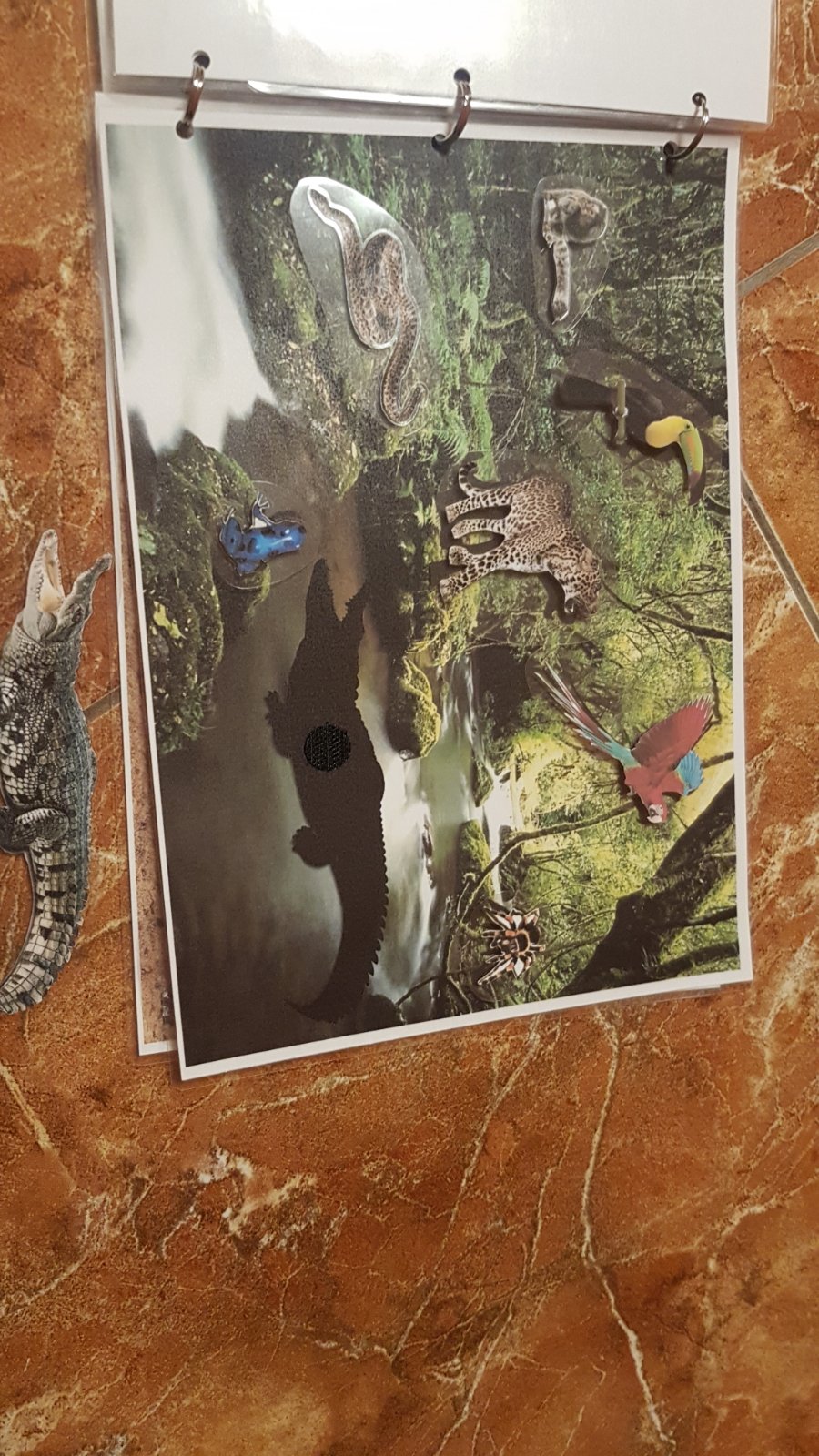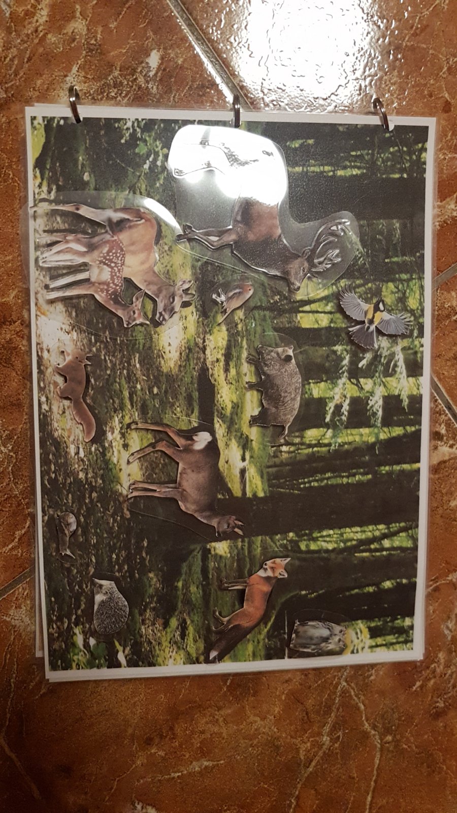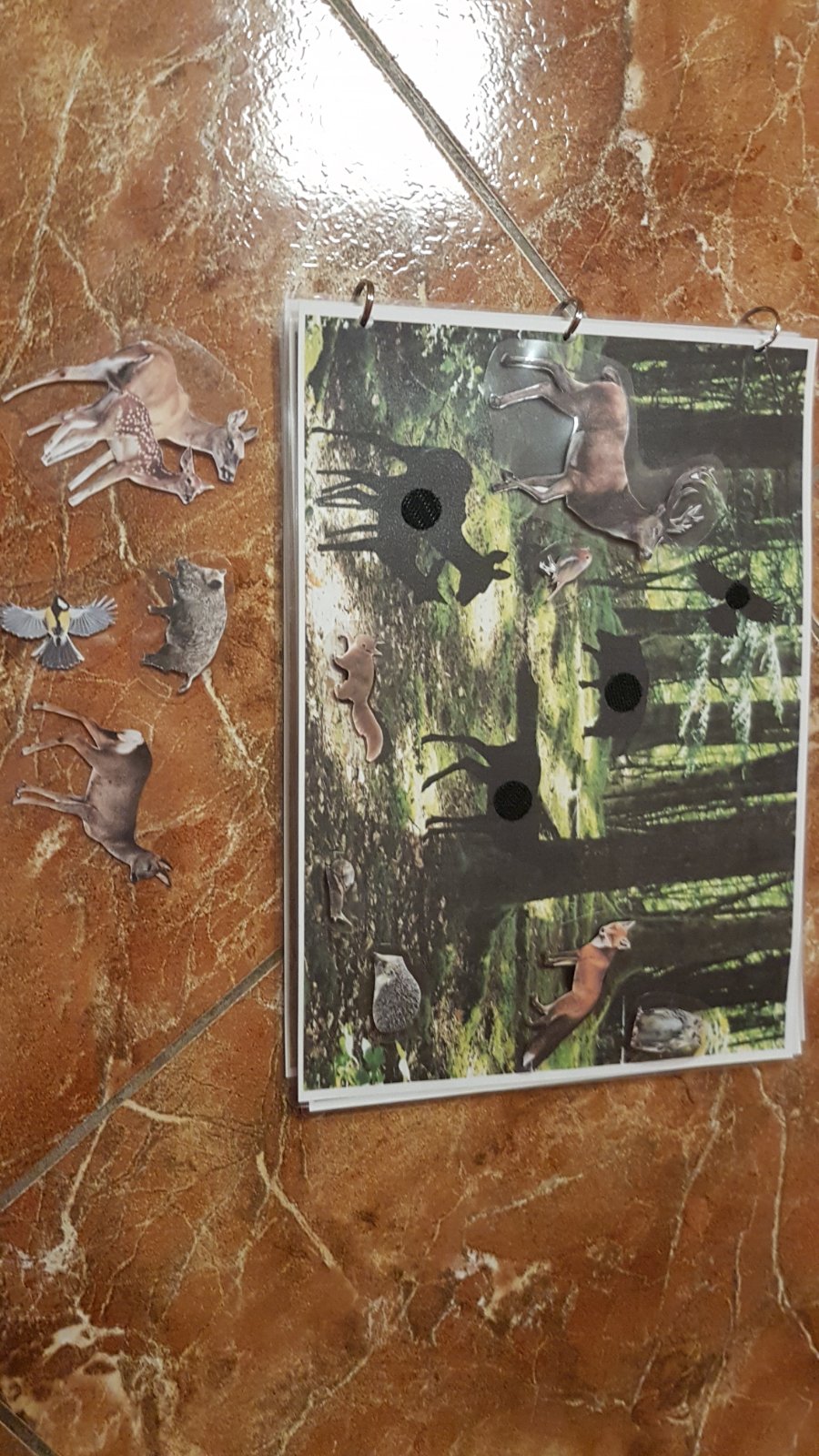Triedenie zvierat podla prostredia vo forme knizky, realnych obrazkov v reanom prostredi, velkost A4, zvierata sa lepia suchym zipsom.
