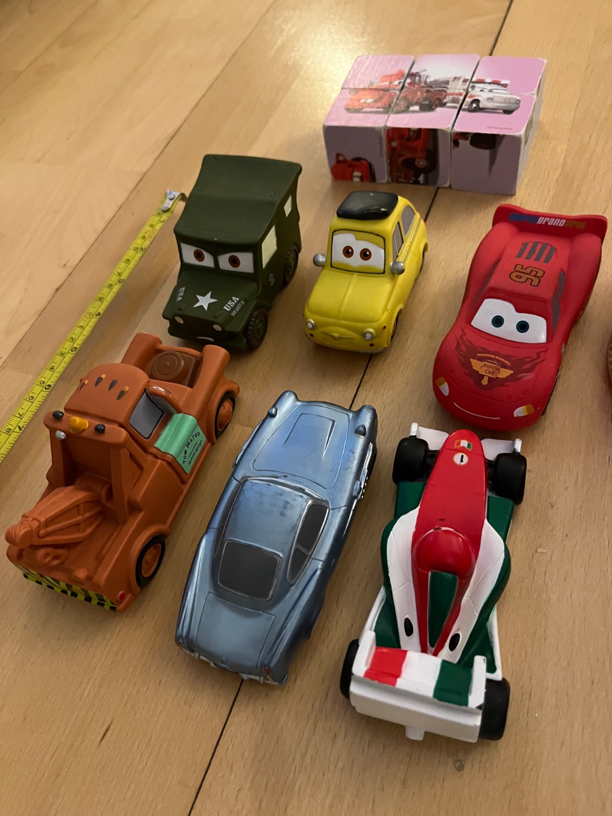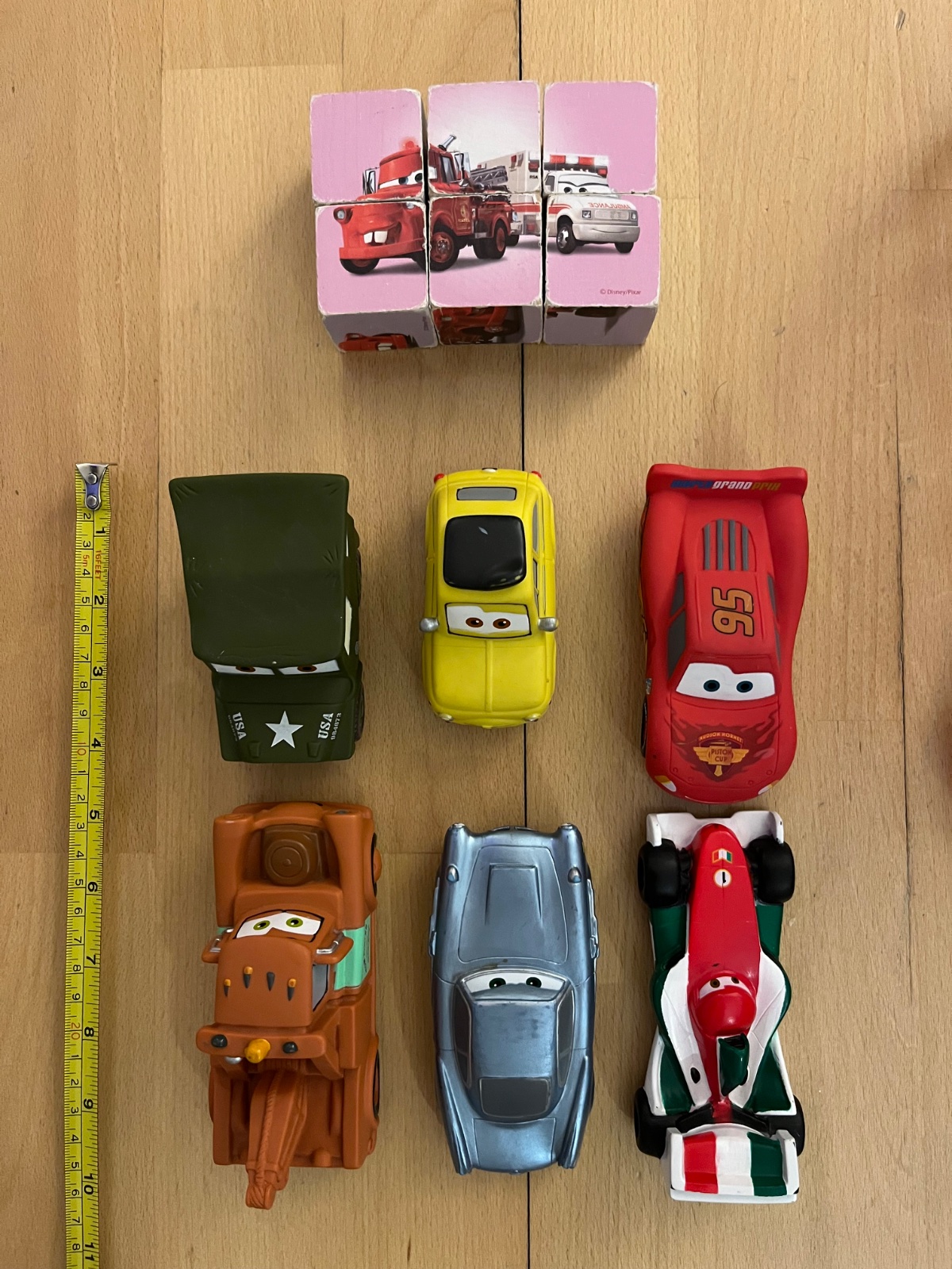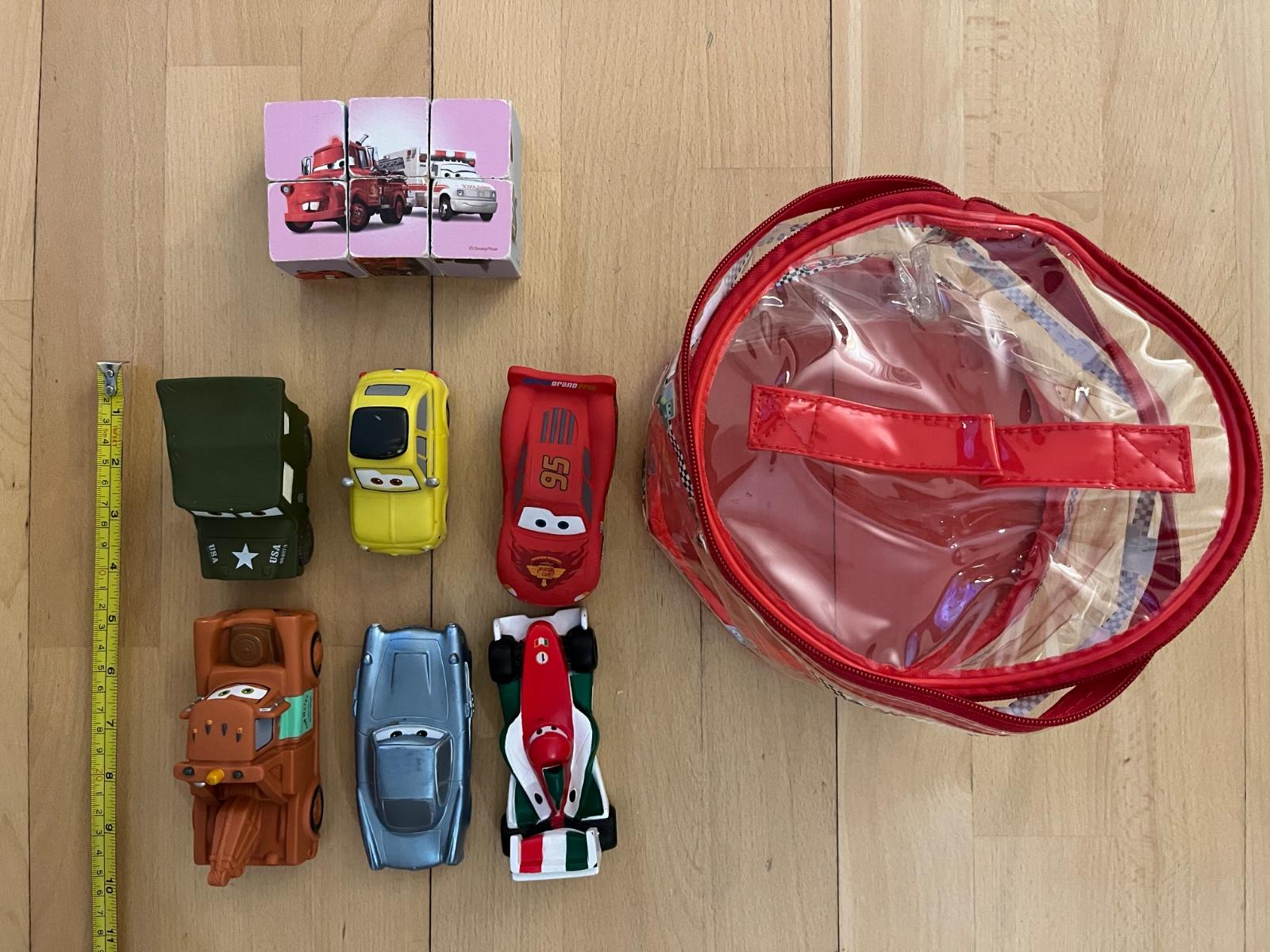 Predam 6 ks autíčka Cars (kupene v Disney Shop v Milane), velkost od 9 do cca 12 cm, kolieska su sucastou autíčka, nie su otocne, vhodne hlavne pre najmenšie deti, s niektorými sa syn obcasne hral - majú jemne osuchanu farbu zo spolu kolies, inak su v super stave. Je to mäkký plast - daju sa trochu zmacknut. Balené v original plastovej taštičke so zipsom. Darujem k tomu set 6 kociek Cars (pouzivane, ošúchané rohy, obrázky ale stale v slušnom stave). BA - Ruzinov.