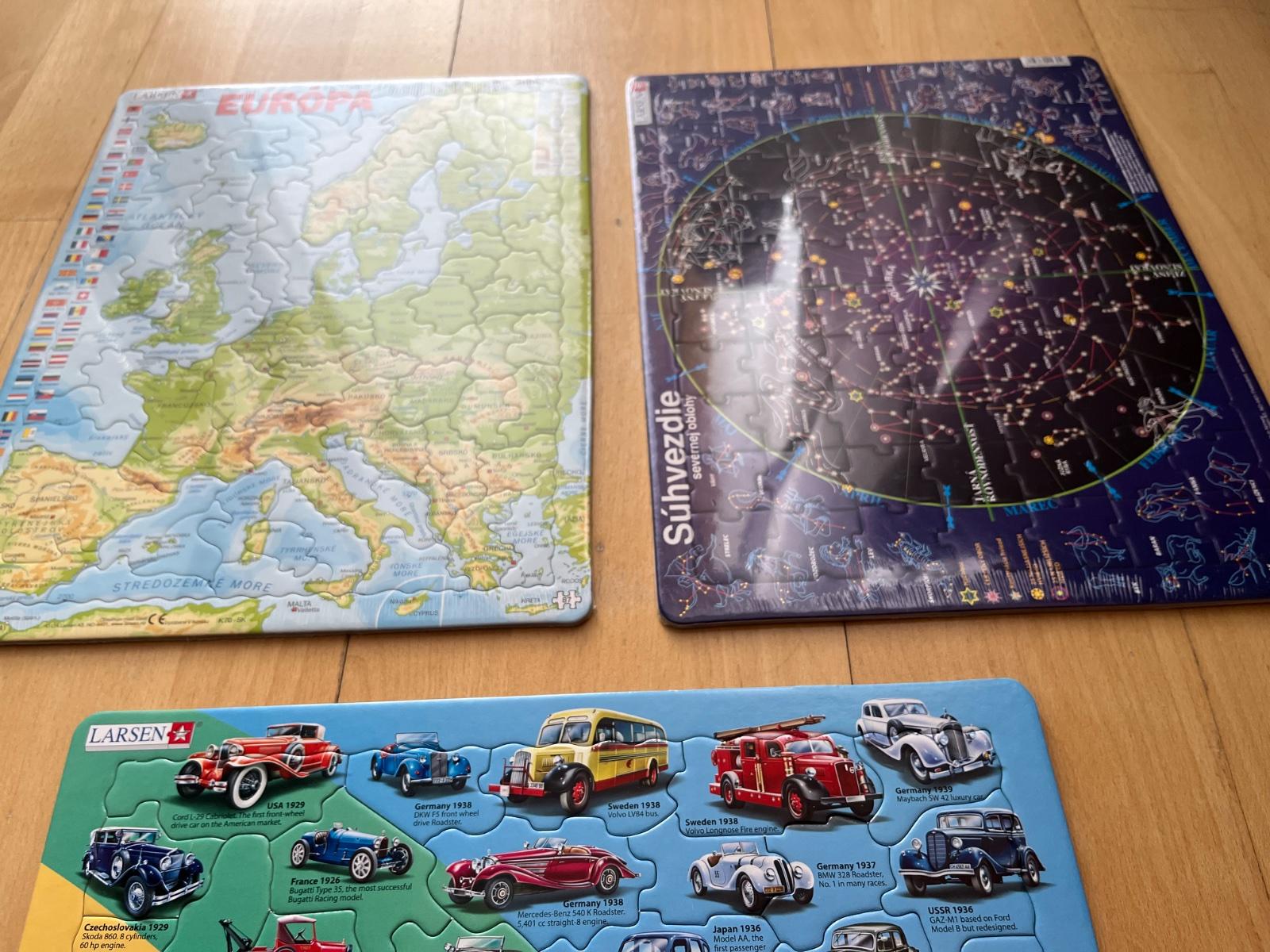 Predam 3 x puzzle, rozmer 36x28 cm, autíčka 1x poskladané - ako nove, ostatne dve vo fólii original zatvorene. Cena uvedena za vsetky spolu, cena za ks / 3 eur. BA - Ruzinov.