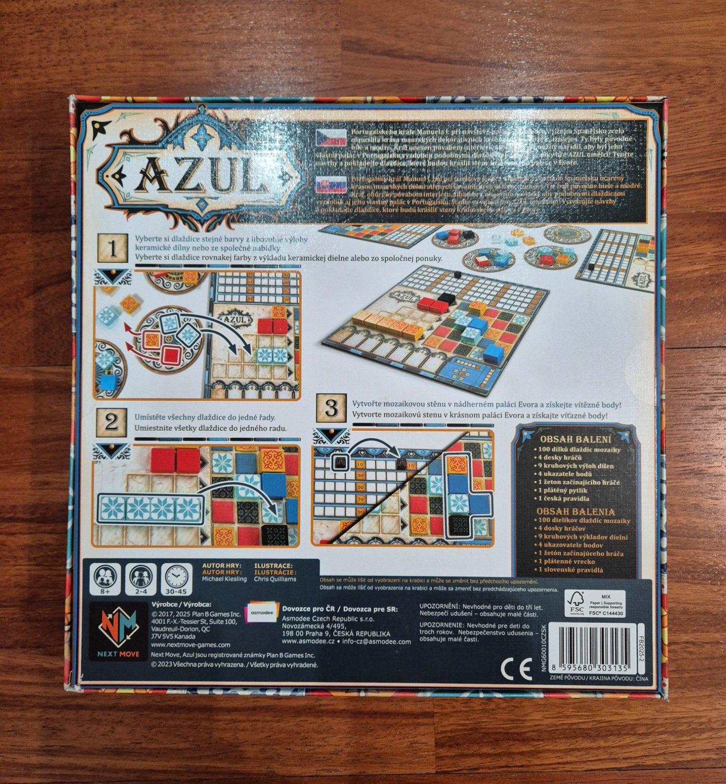 V hre Azul máte za úlohu vyzdobiť kráľovský palác Evora. Hráči sa striedajú v ťahoch, ťahajú si farebné dieliky zo spoločnej zásoby a ukladajú ich na svoju hernú dosku. Neskôr získavajú body podľa toho ako umiestnili jednotlivé dieliky do paláca.