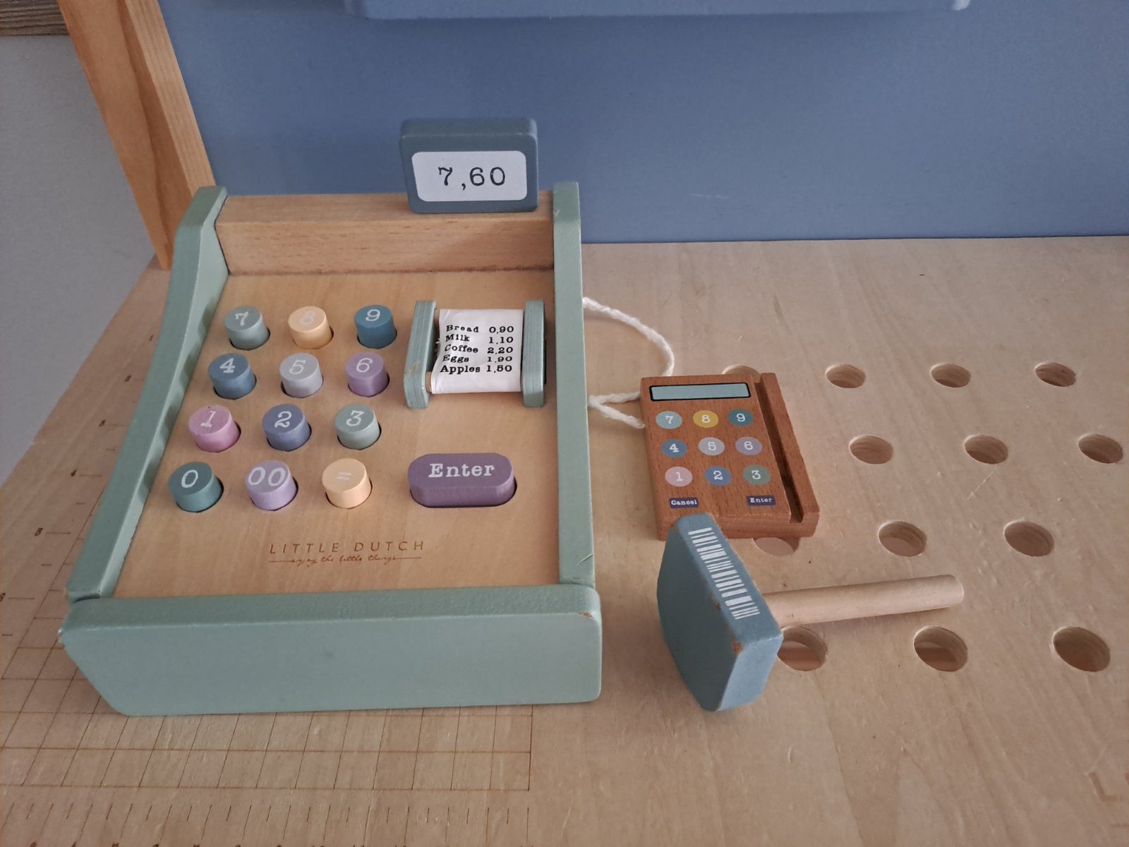Predam pouzivane Little Dutch hracky(miestami odreninky,skrabanceky): ,pokladnica-na 1 mieste je lepena (4€), tahaci medved(3€), nasadzovacie kruzky (6€), set 3 auticok (9€), traktor (3€),hrkalka dazd (5€). V pripade zaujmu rada doposlem detailnejsie fotky:-)