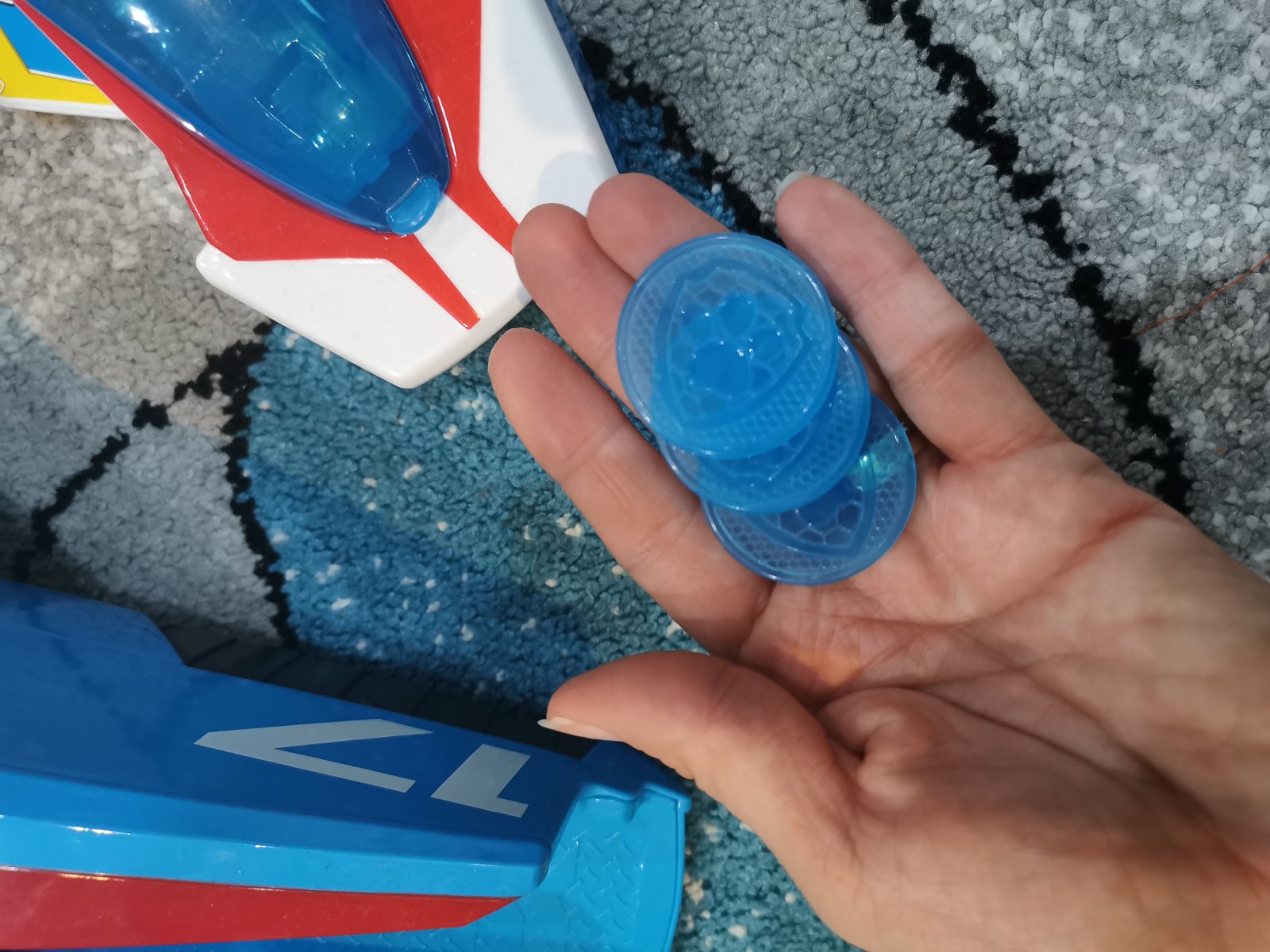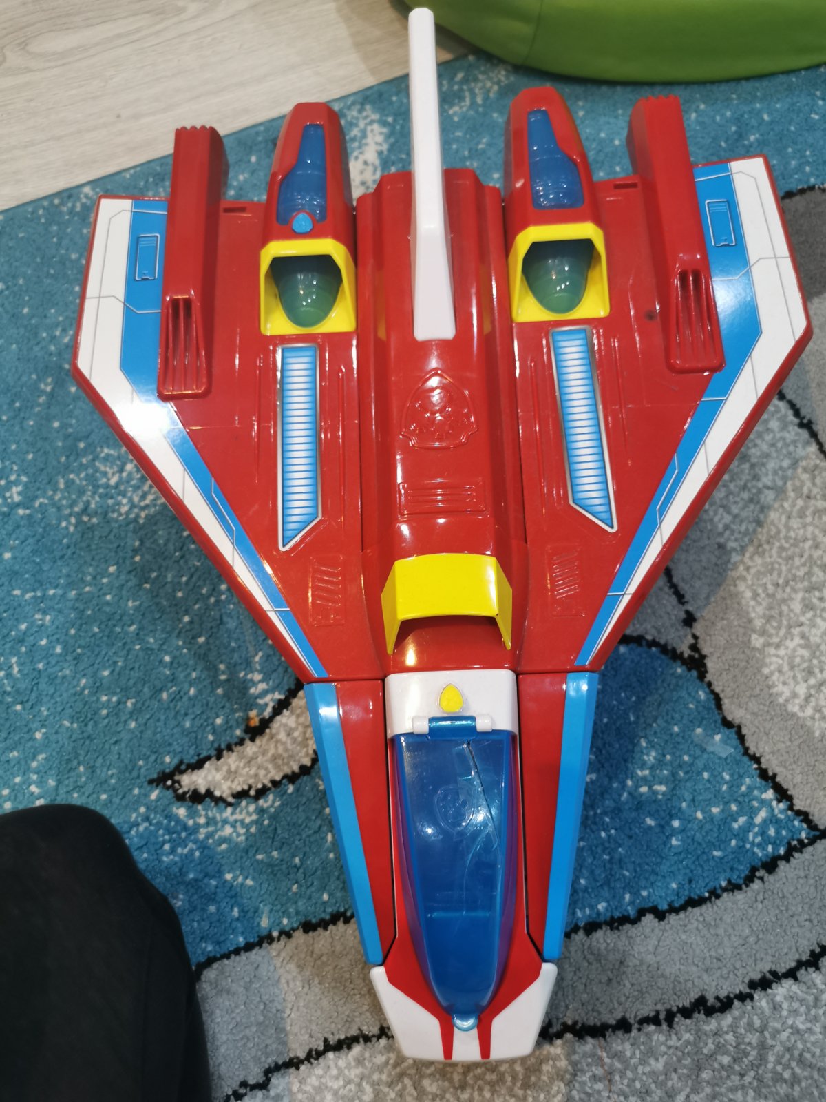 Toto najnovšie luxusné tímové vozidlo 2 v 1 sa pretransformuje z prúdového lietadla na ovládacie centrum pre PAW Patrol! Na zemi nadvihnite rukoväť na tryskáči a prepnite na mobilné veliteľstvo. S priestorom pre všetky figúrky Paw Patrol. Zavrite velenie späť do Mighty Jet a stúpajte oblohou! Na spustenie diskov a odstránenie prekážok stlačte tlačidlo na prednej časti dýzy. Mighty Jet od PAW Patrol so skutočnými svetlami a zvukmi a realistickými detailmi je pripravený na najnovšie dobrodružstvá! Stíhačka vydáva rôzne zvuky a blikajú svetlá. Rakety sa dajú vysunúť. Zadná časť sa otvára pre naloženie nákladu. Horná časť sa otvára pre posádku. Menšia raketa vpredu sa dá oddeliť. Súčasťou sú aj 3 náboje. Predný modrý kryt na malej rakete je zlepený páskou, keďže je zlomený, ale určite sa dá zlepiť iným lepidlom. Cena prispôsobená stavu, inak je bez poškodenia.V