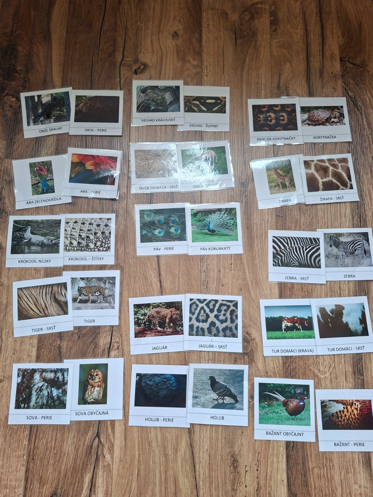 Kartičky - zvierata a ich srst/perie/pancier/supin