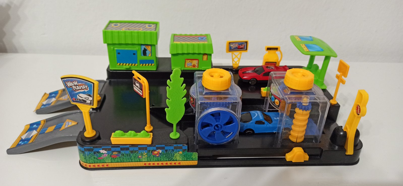 Predám autoumyváreň s posuvným pásom na presúvanie áut v dobe umývania. Zlomená jedna značka, inak ostatné nepoškodené. Súčasťou balenia sú 2 autá. Cena + poštovné.