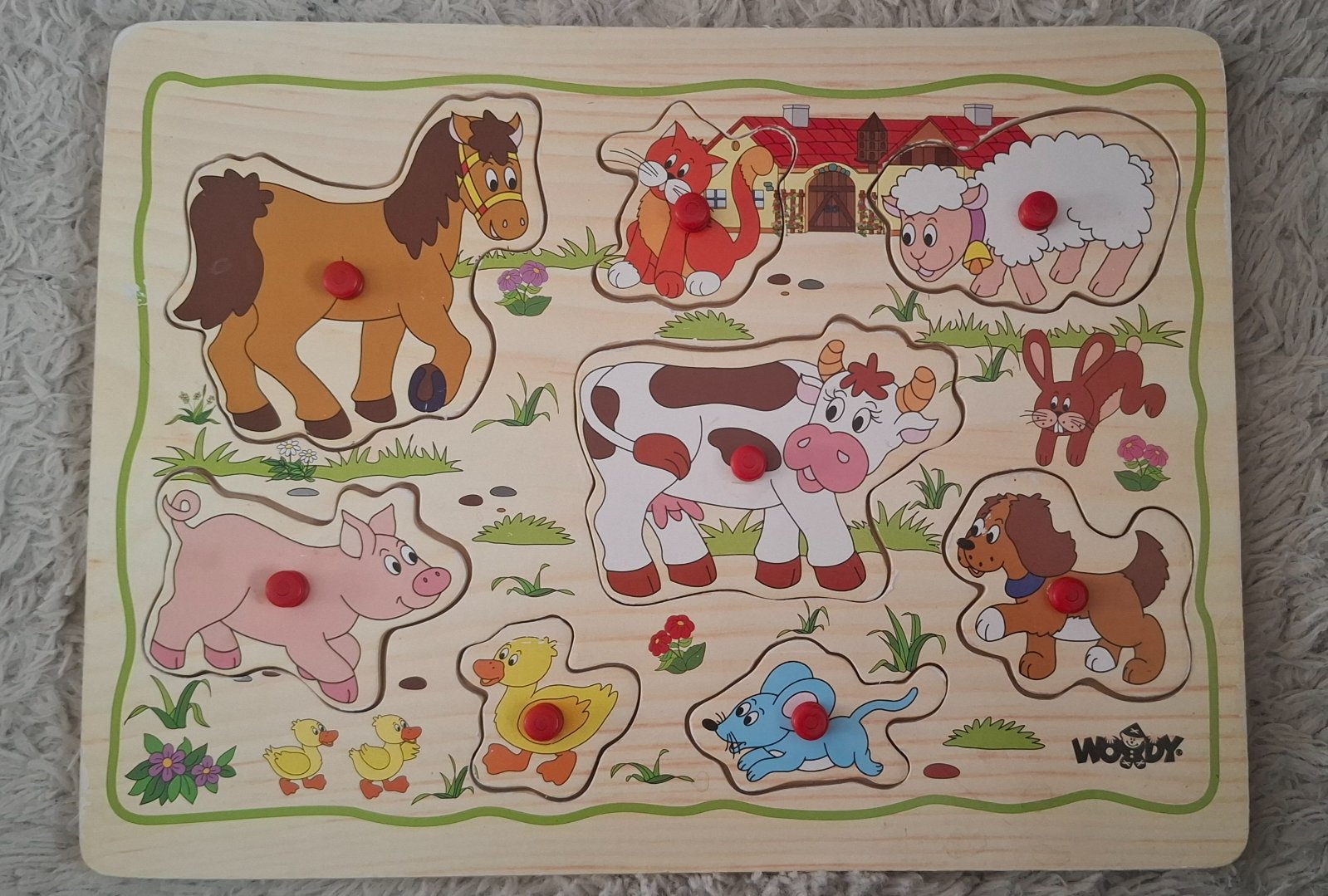 Puzzle, vkladačka zvieratká pre najmenších. Drevené, super stav. Velkosť ako A4
