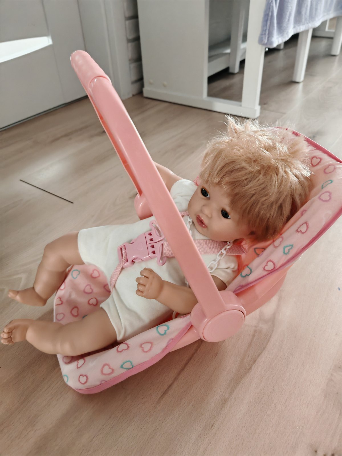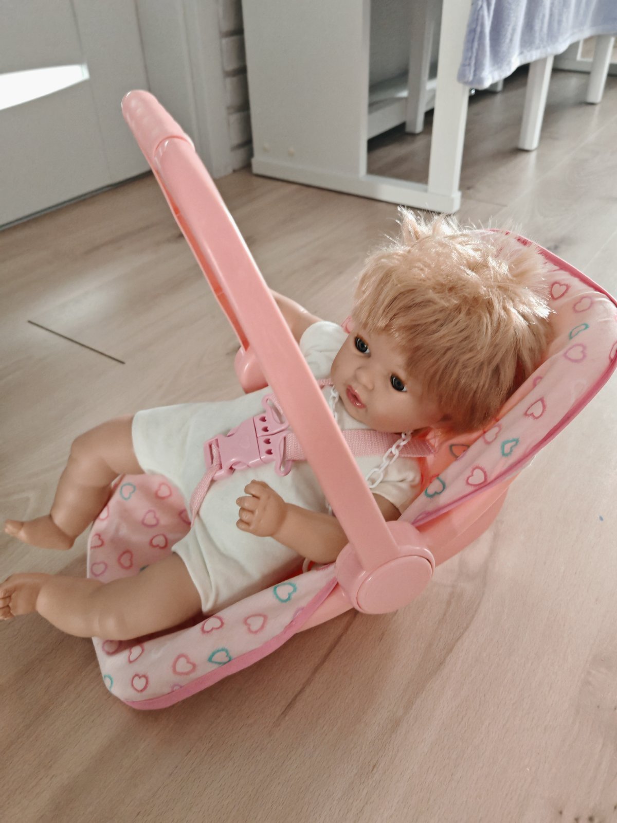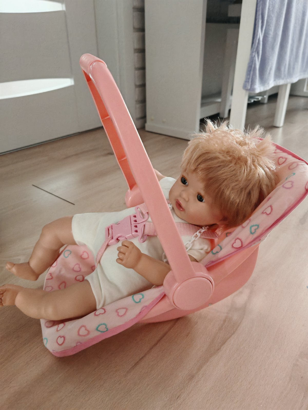 Predám detskú hračkárske autosedačku , bábika pôvodne stála 40 eur, placuca, zmurkajuca, tu ak by ste mali záujem dám po 15 eur obllecenie k nej mám