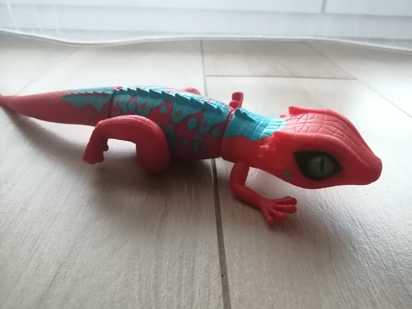 Veľká 35 cm robotická jašterica, rýchlo behá, je na dve AA baterky, dá sa vypnúť tlačítkom, keď sa mu zdvihne hlava, zastane