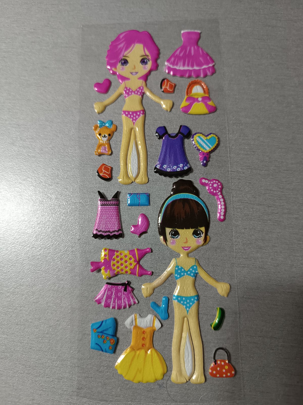 Bábiky sa dajú opakovane obliekať a vyzliekať. Nálepky sa dajú dokola používať.