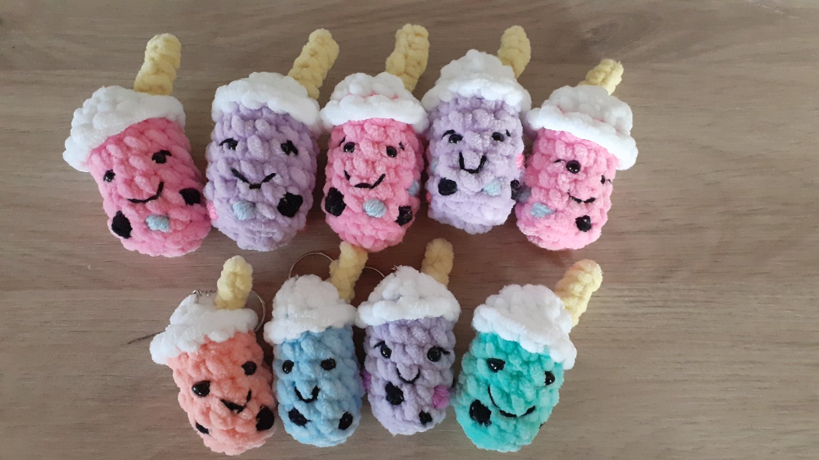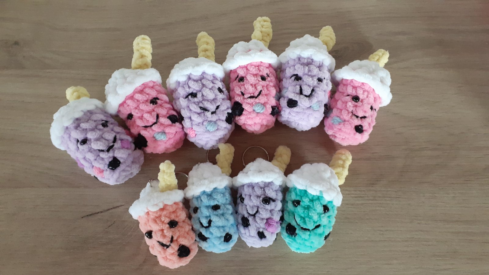 Háčkovaný bubble tea z príjemnej mäkučkej priadze, vyplnený dutým vláknom. Výška 17cm so slamkou 20cm. S bezpečnostnými očkami. Uháčkujem v rôznych farbách a velkostiach. Háčkujem aj malé prívesky bubble Tea, donuty gumičky atď. Stačí sa len ozvať a dohodneme sa.