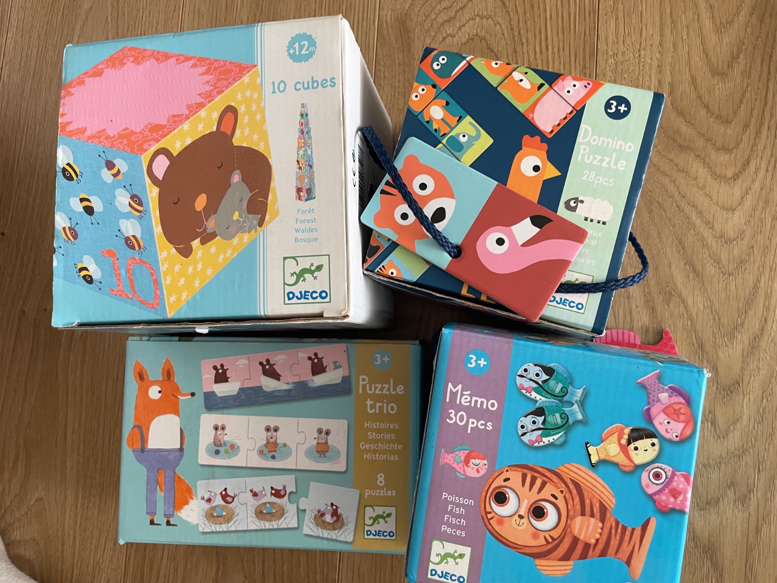Predam vnimave hracky znacky DJECO - velmi krasne ilustrovane a kvalitne soracovanr - puzzle,domino, kocky, pexeso. Idealne vsetky spolu, oosbitne len na osobny odber.