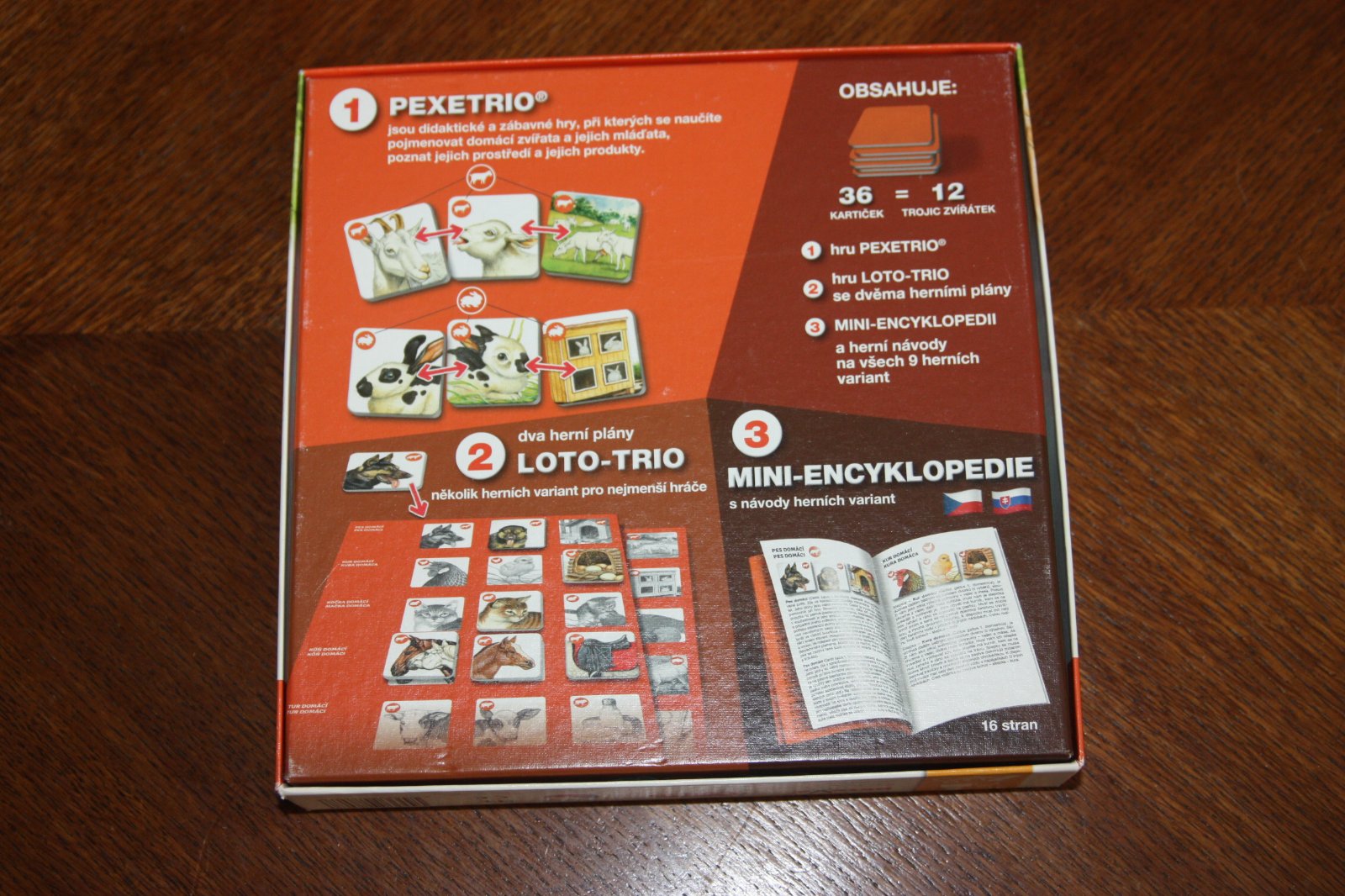 Pexetrio - Zvieratá na statku je didaktická a zábavná hra, v ktorej sa deti naučia základné fakty o zvieratách našich fariem a dvorov.