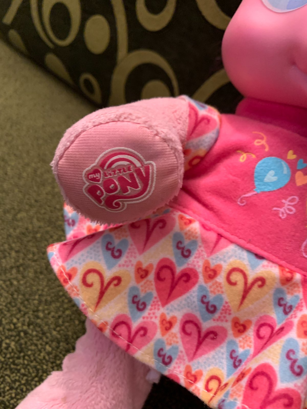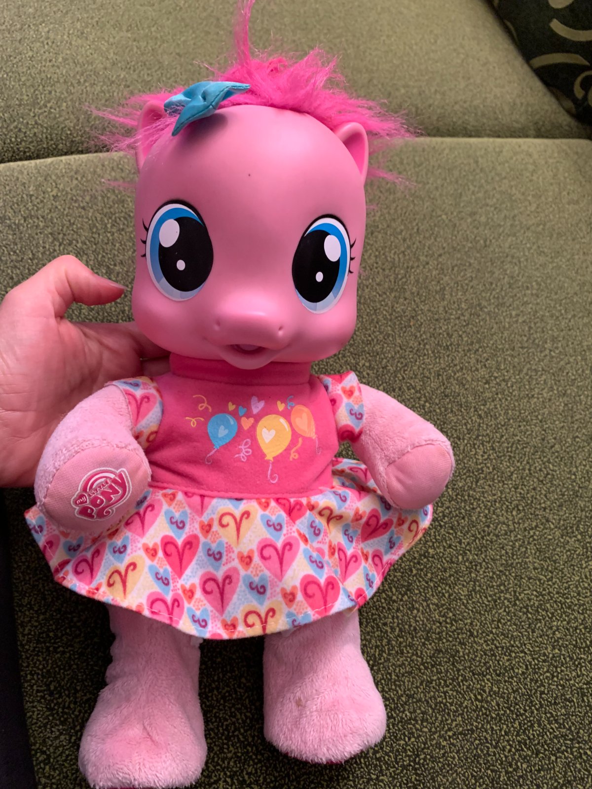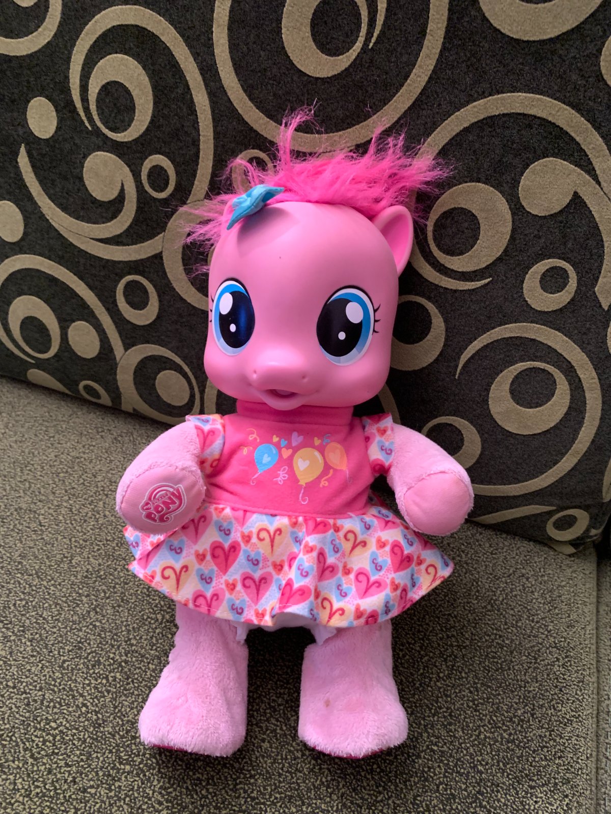 Hovoriaci poník Pinkie Pie. Po zatlačení ruky rozpráva, po zatlačení pusinky akoby pije a opäť rozpráva, no už niečo iné. Nožičky sa mu už nehýbu. Pekný stav.