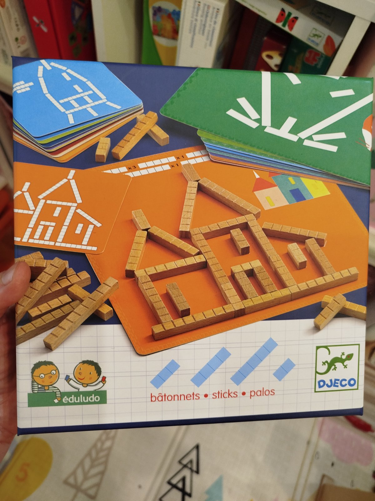 Top stav. Hra podporuje kreativitu a odhad na dĺžku jednotlivých drevených dielov, ktoré sa skladajú do predlôh rôznych obrázkov. Hravé učenie matematiky v praxi.