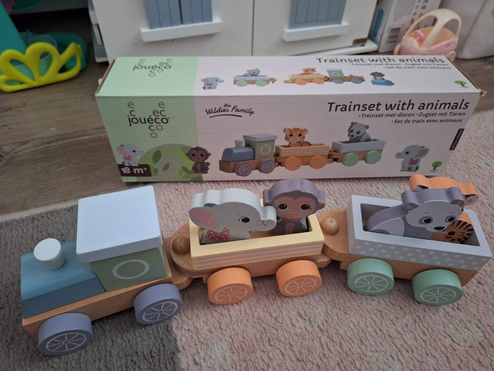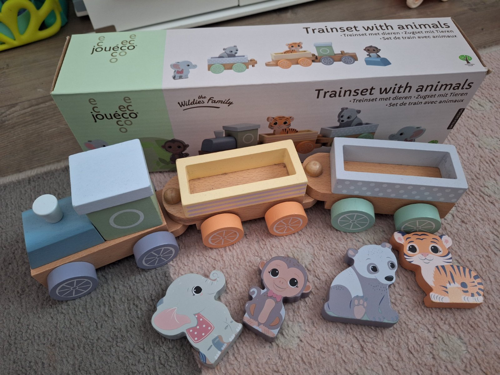 Par krát hrany drevený vláčik so zvieratami. K dispozícii s krabicou