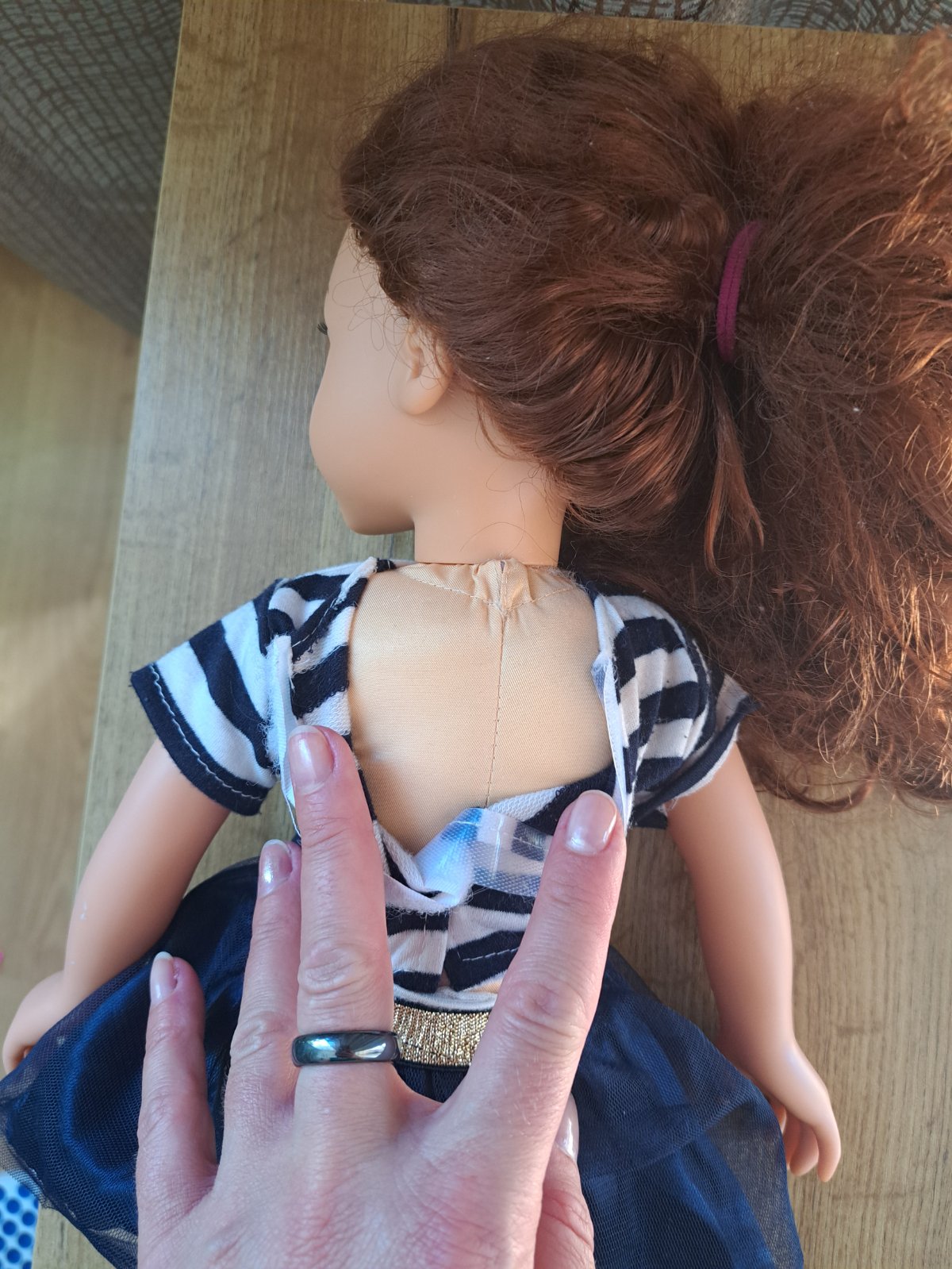 Vlasy: Gaštanové, dlhé 33 cm, odporúčaná od 3 rokov.