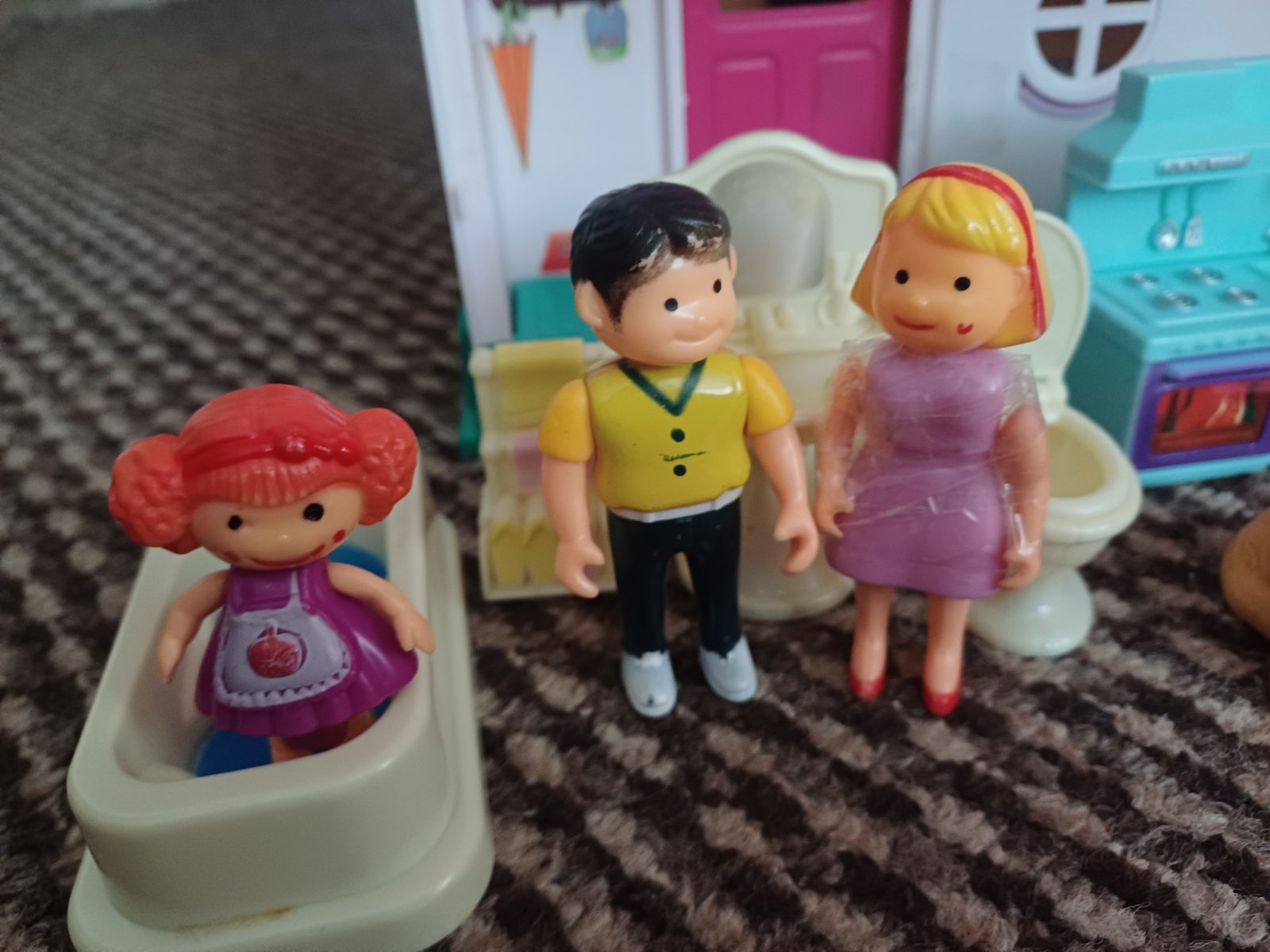 Figúrky: mama a dcérka lepené. Vchodové dvere na domčeku lepené.