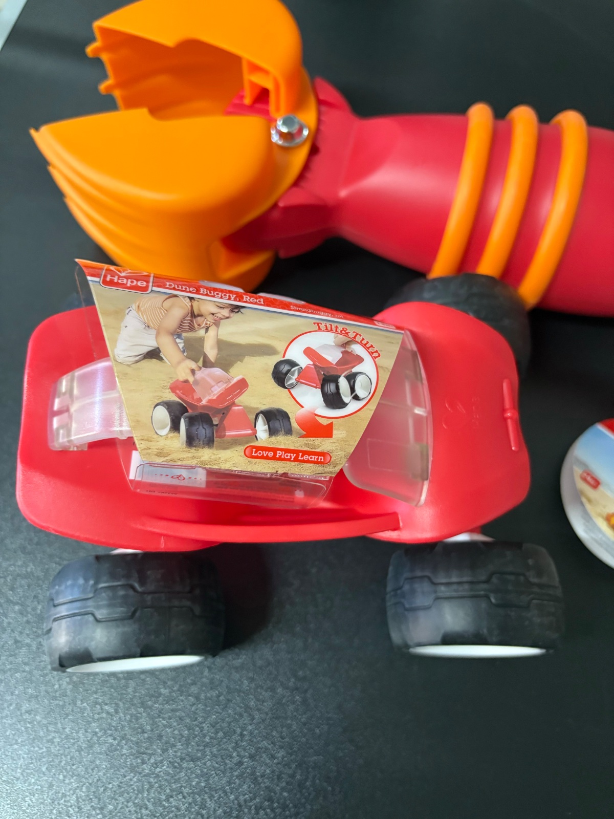 Naklápacie telo, masívna rukoväť a nezávisle sa otáčajúce kolesá umožňujú buginu ľahko ovládať. Kolieska reagujú na každú nerovnosť, takže riadenie buginy je hračka. Hodí sa ako na pieskovisko, tak aj napríklad na pláž. Vďaka väčším rozmerom skvele padne do ruky a výborne sa s ňou manipuluje. Červená bugina Hape je vyrobená z veľmi kvalitného plastu, preto je vysoko odolná, a tým pádom na detské hry ako stvorená. Kľúčové vlastnosti červenej buginy HapeKvalitné spracovanie z odolného plastuVäčšia veľkosť na jednoduchú manipuláciuNaklápacie telo a nezávisle sa otáčajúce kolieska na jednoduché riadenieHape bugina je vhodná na pieskovisko i plážePre chlapcov aj dievčatá: s červenou bugínou Hape sa zabavia vždy a všadeSuper dizajn