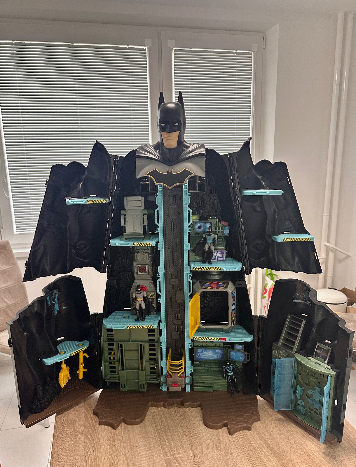 Cca 85 cm vysoká Batman veža, otvára sa, výťah funkčný so zvukom. K veži pridávam 3 batmanov a auto, ktoré sa skladá z 2 aút ktoré sa do seba vsuvaju. Veža je malo hrana.