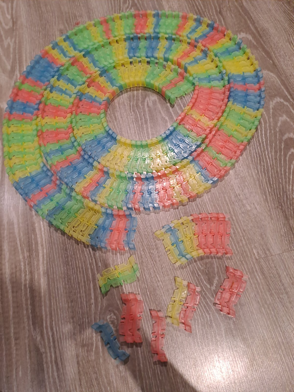 Top stav. Autodráha na kt sa odráža svetlo autíčok. Autíčka na baterky 3x. (Ich pôvodná cena spolu 15€+draha 30€) 2x autička sú úplne nové.