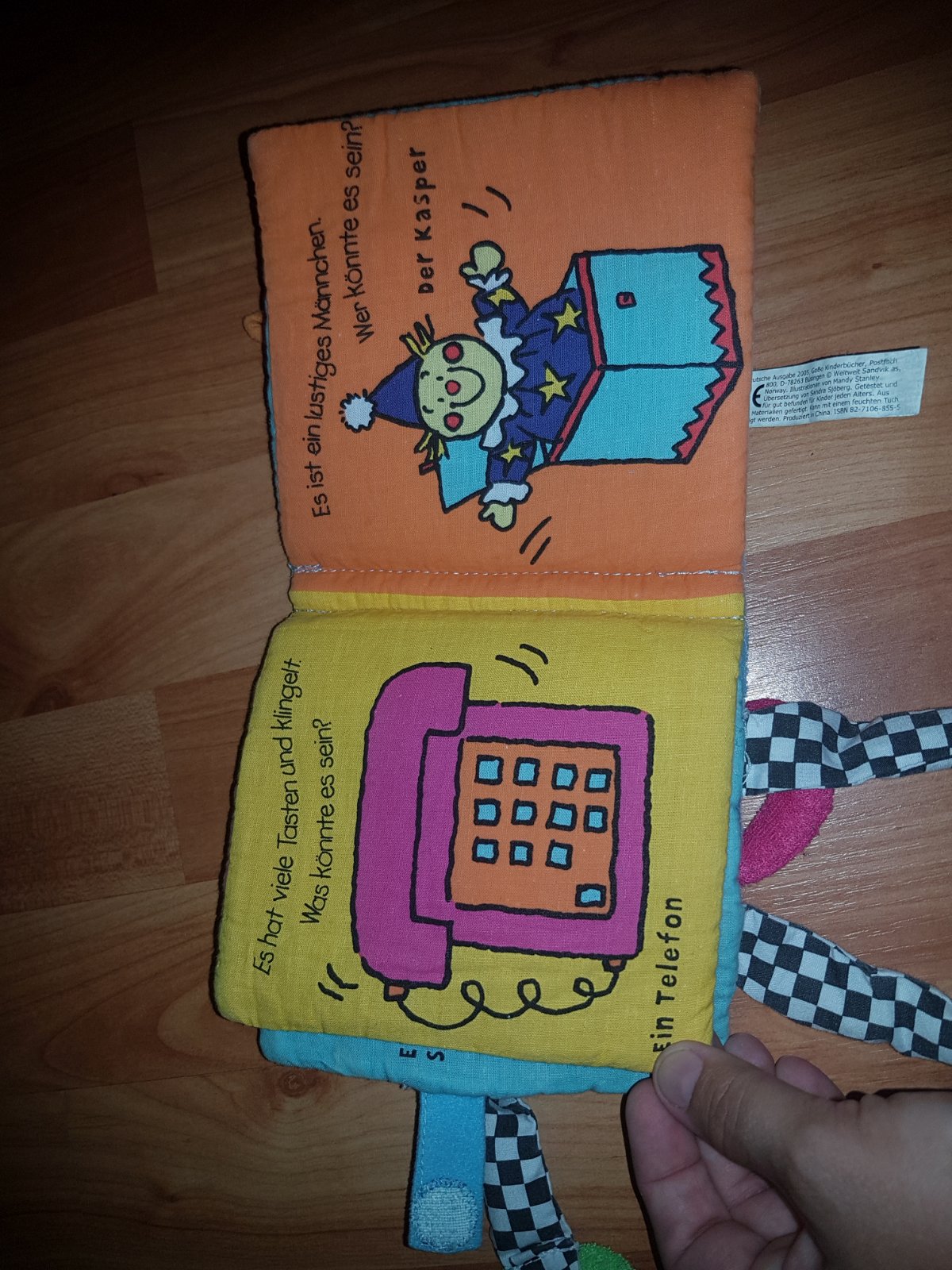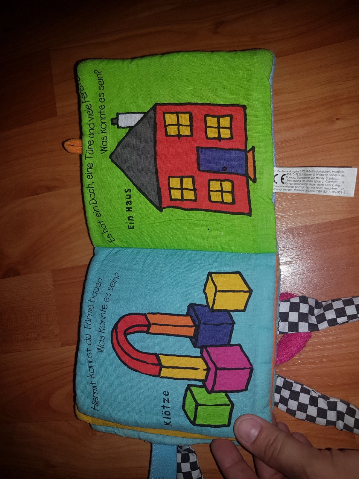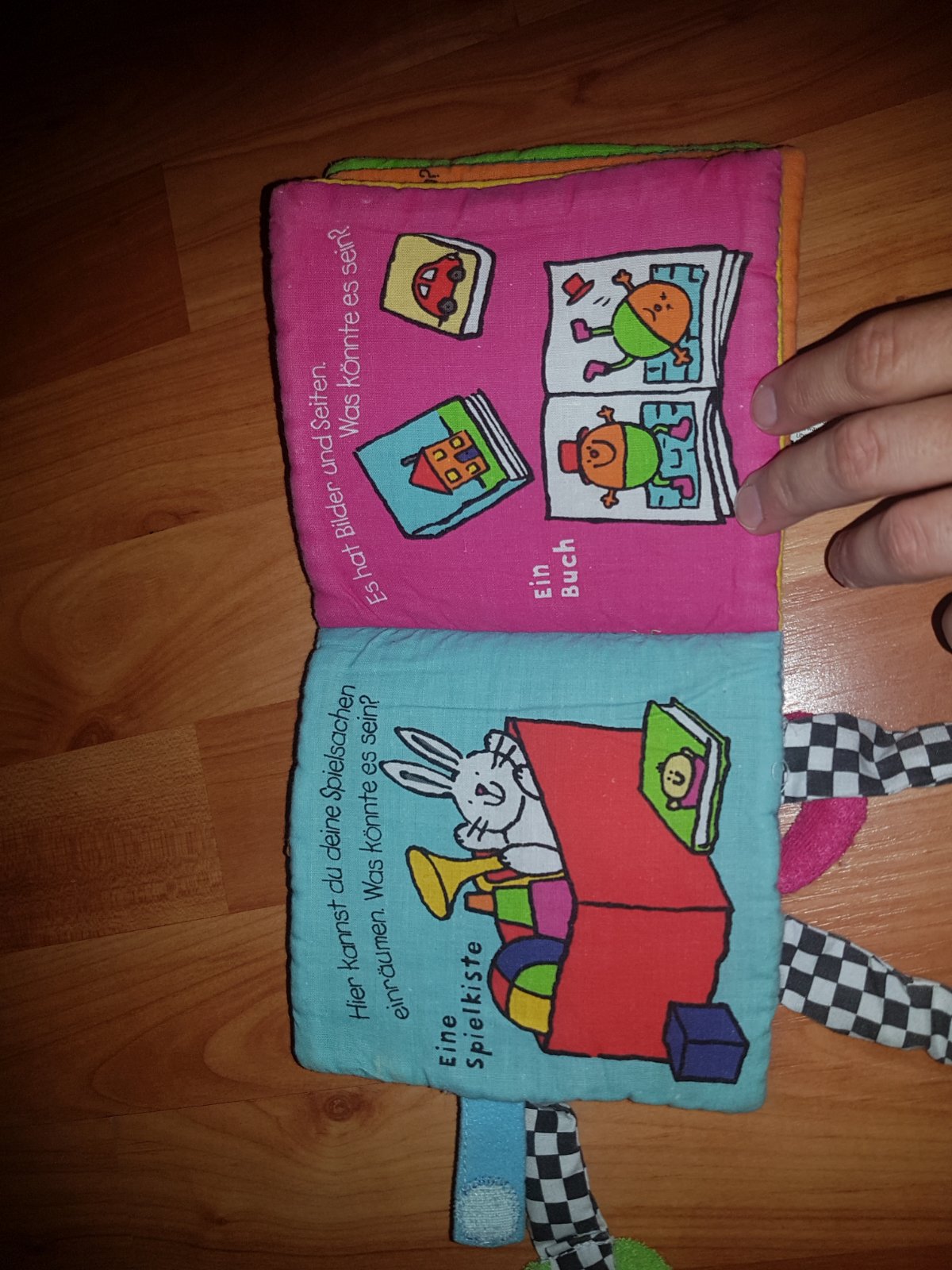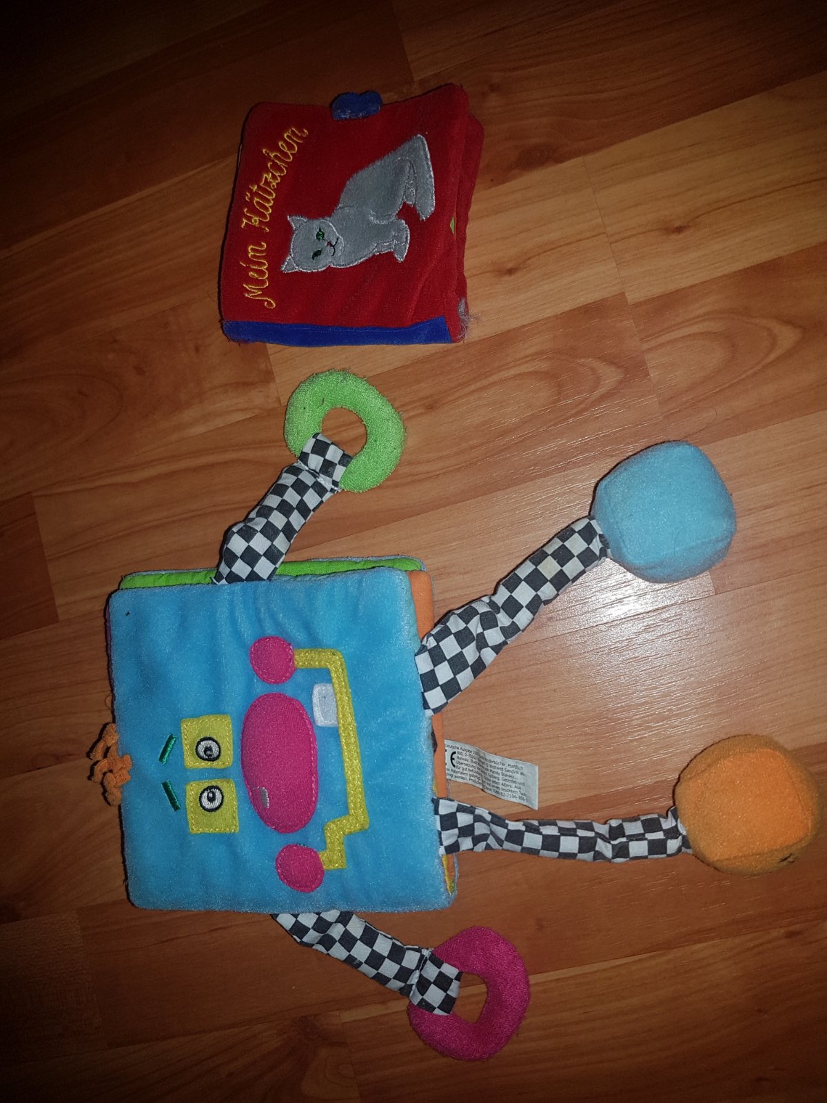 2 látkové knižky. Nožičky šuštia hrkajú.