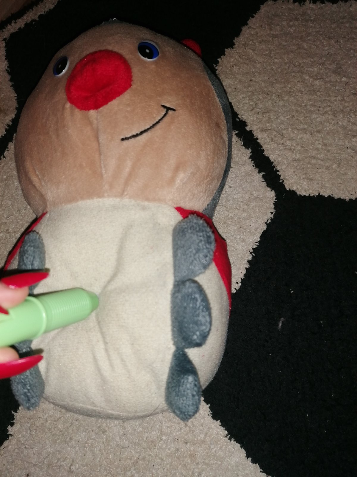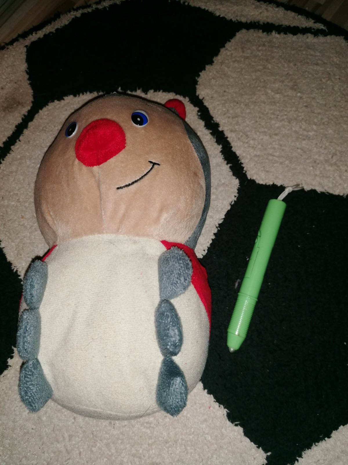 Lienka ma fosforove bruško aj pero ktorým píšeš naň. V tme uvidíš. Pero stlač a svieti píše, ba na foto nevidno