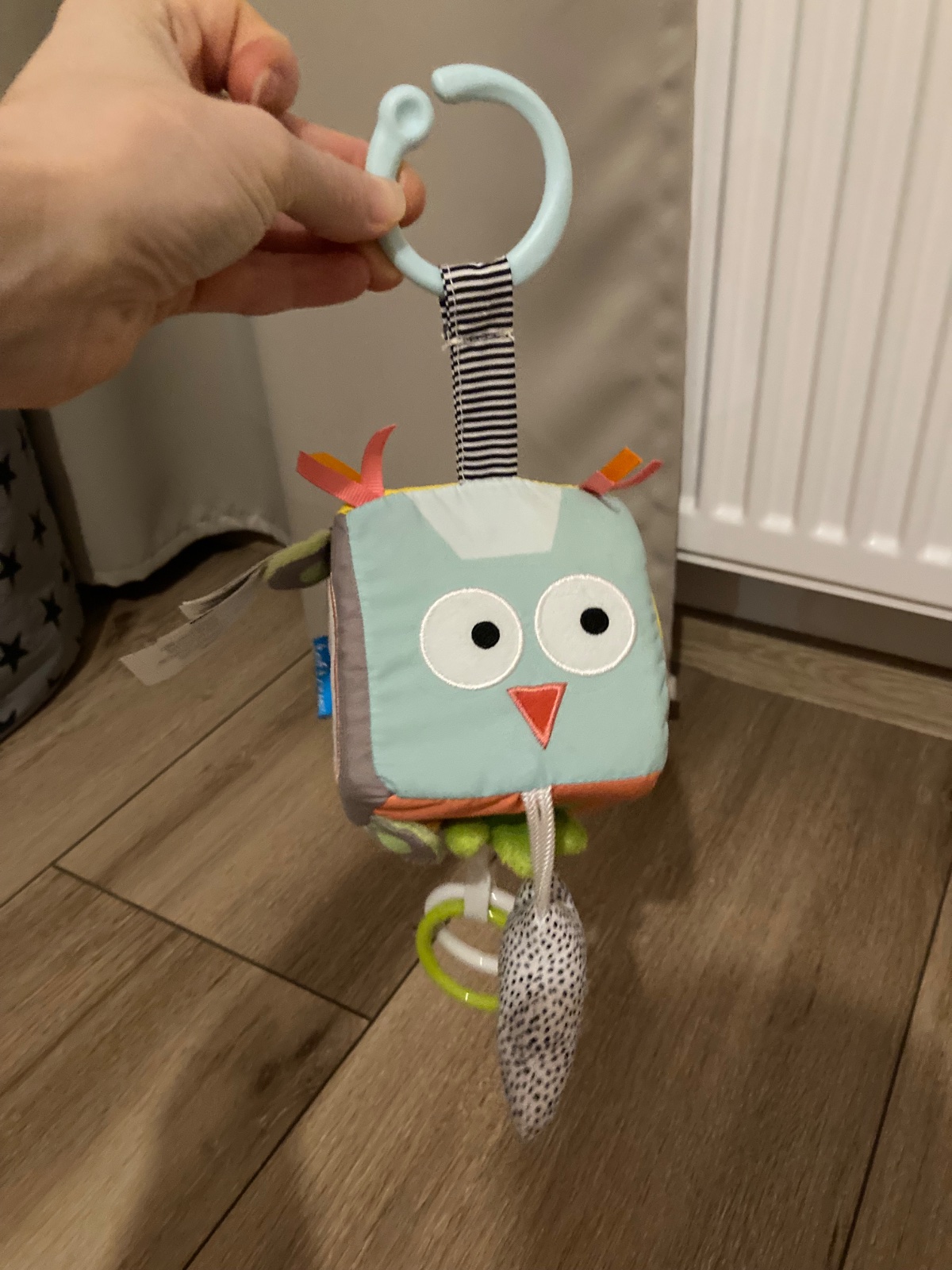Značka Fisher price. Hrá upokojujúce melódie, bruško sa pohybuje hore dole, lampa svieti, hračka dýcha, bije mu srdiečko. Toto všetko sa dá zvlášť vypínať podľa potreby. Super pomôcka na zaspávani...