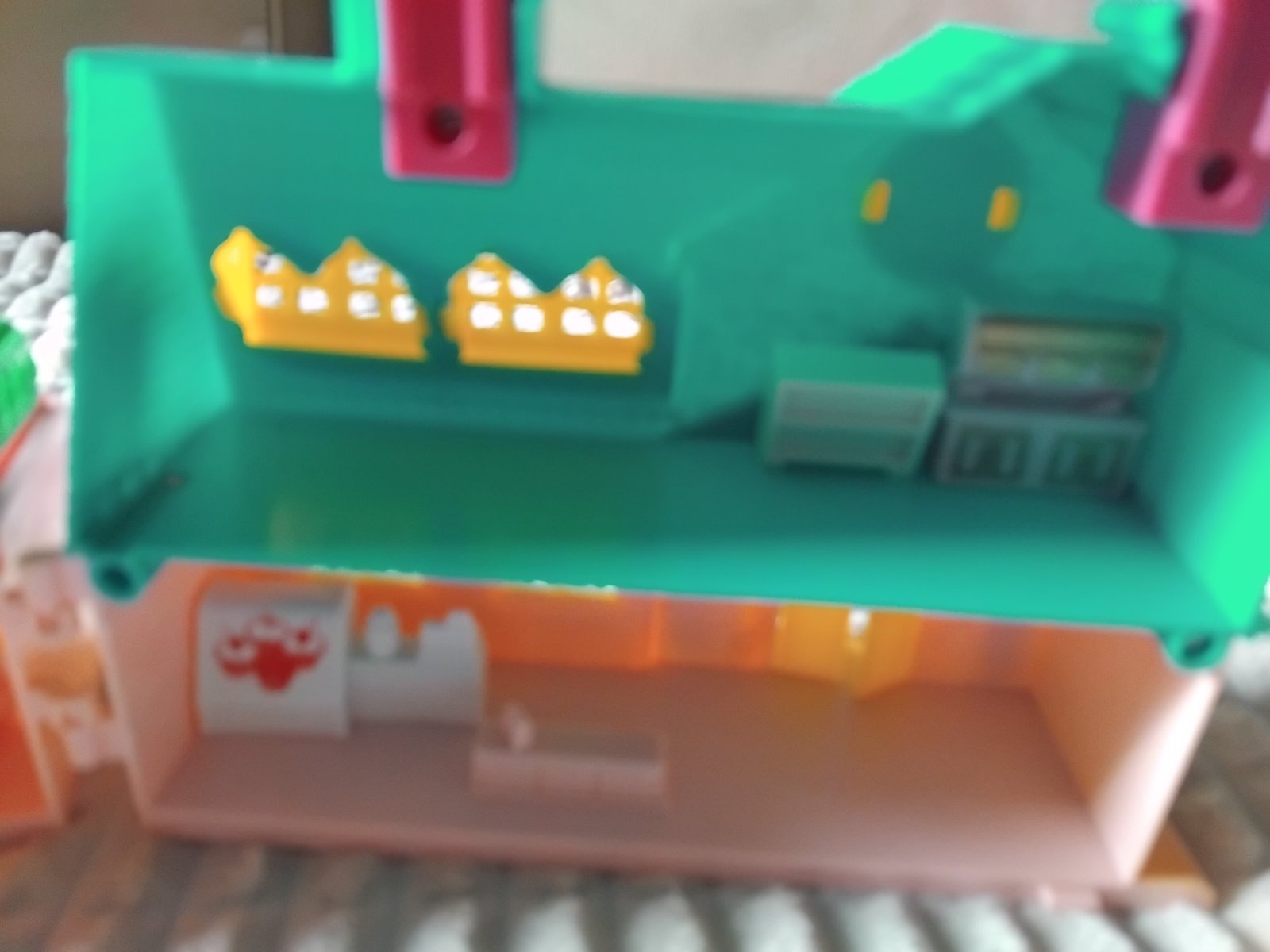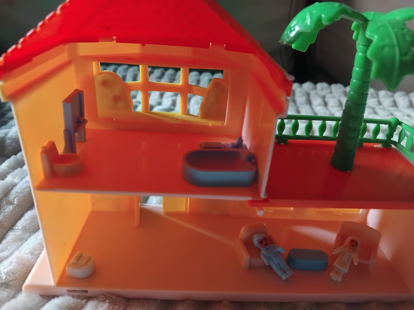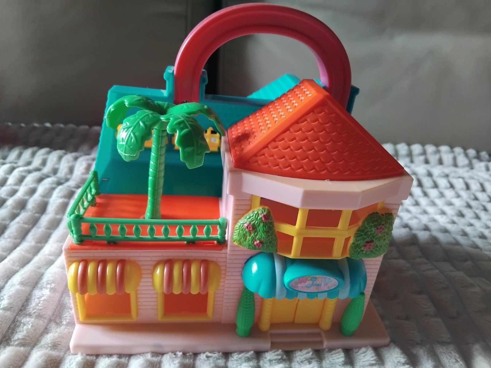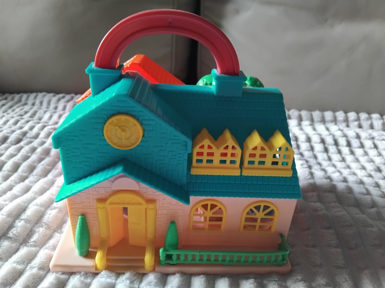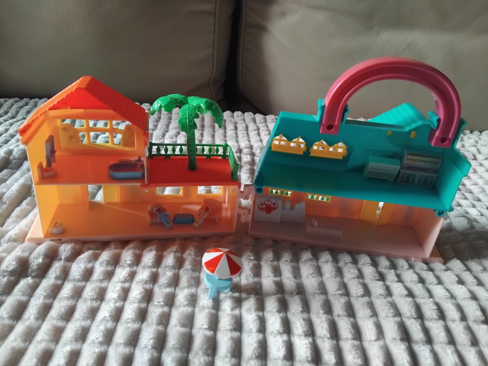 Obojstranny domček na hranie s mini nabytkom a figurkami.