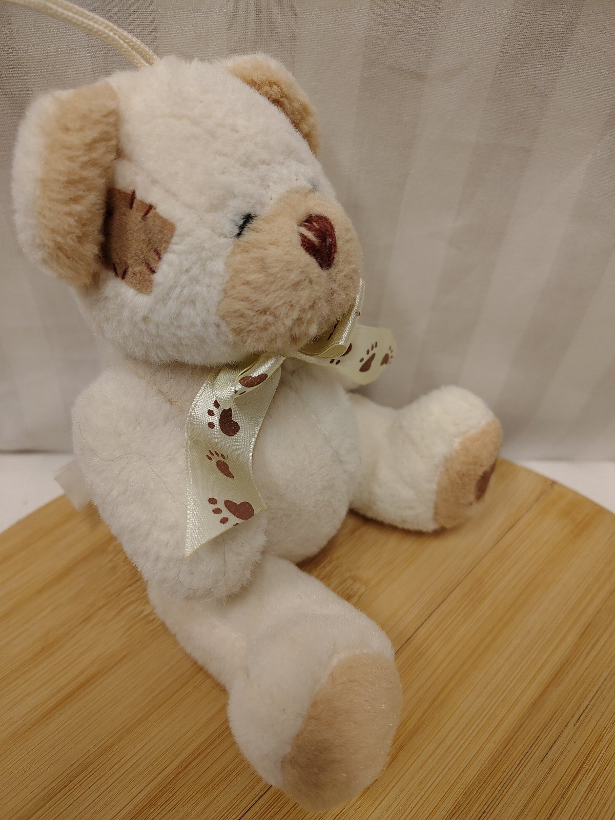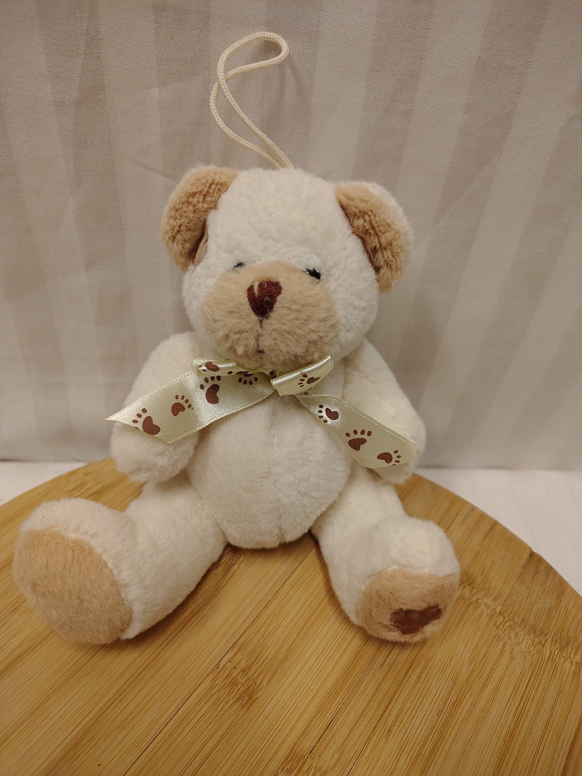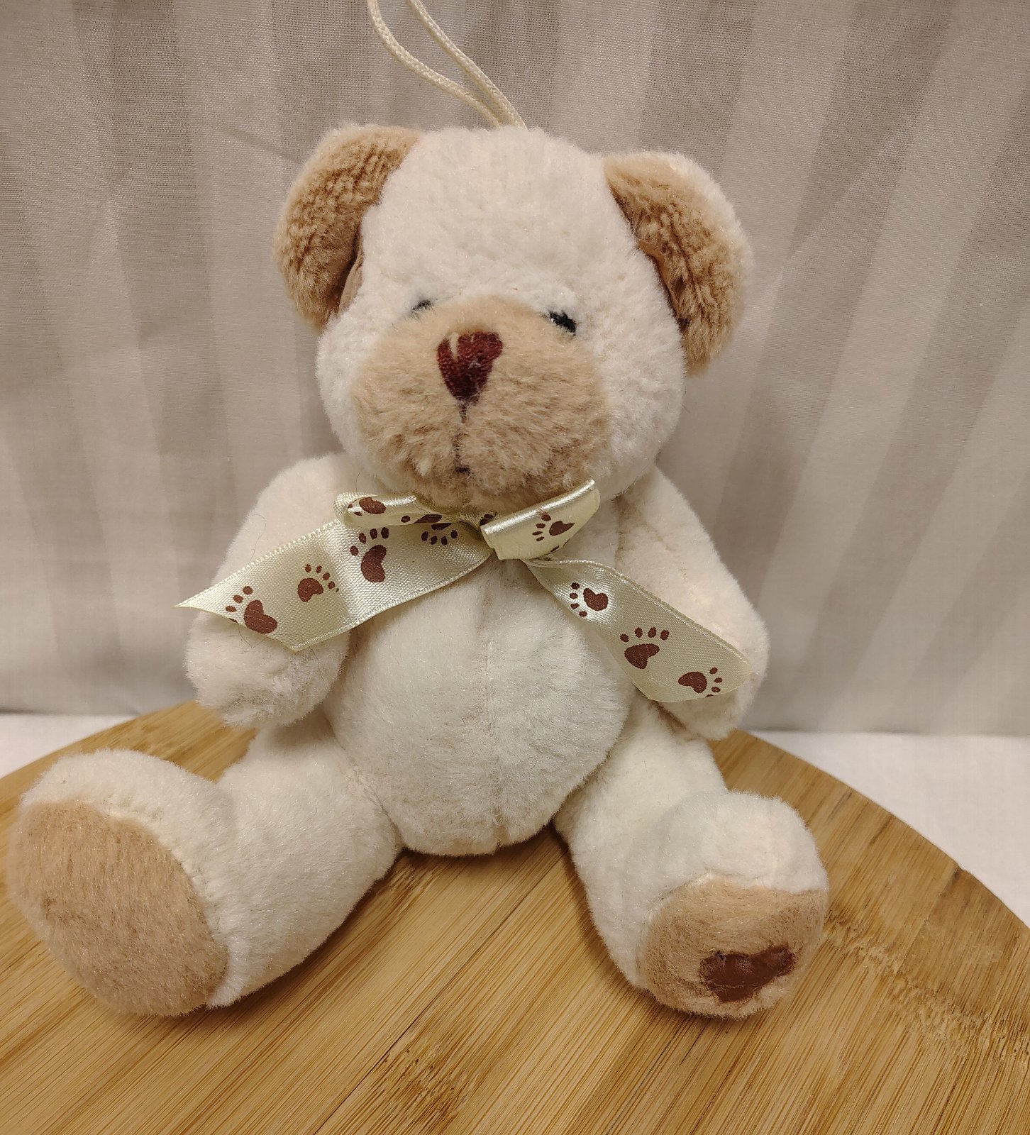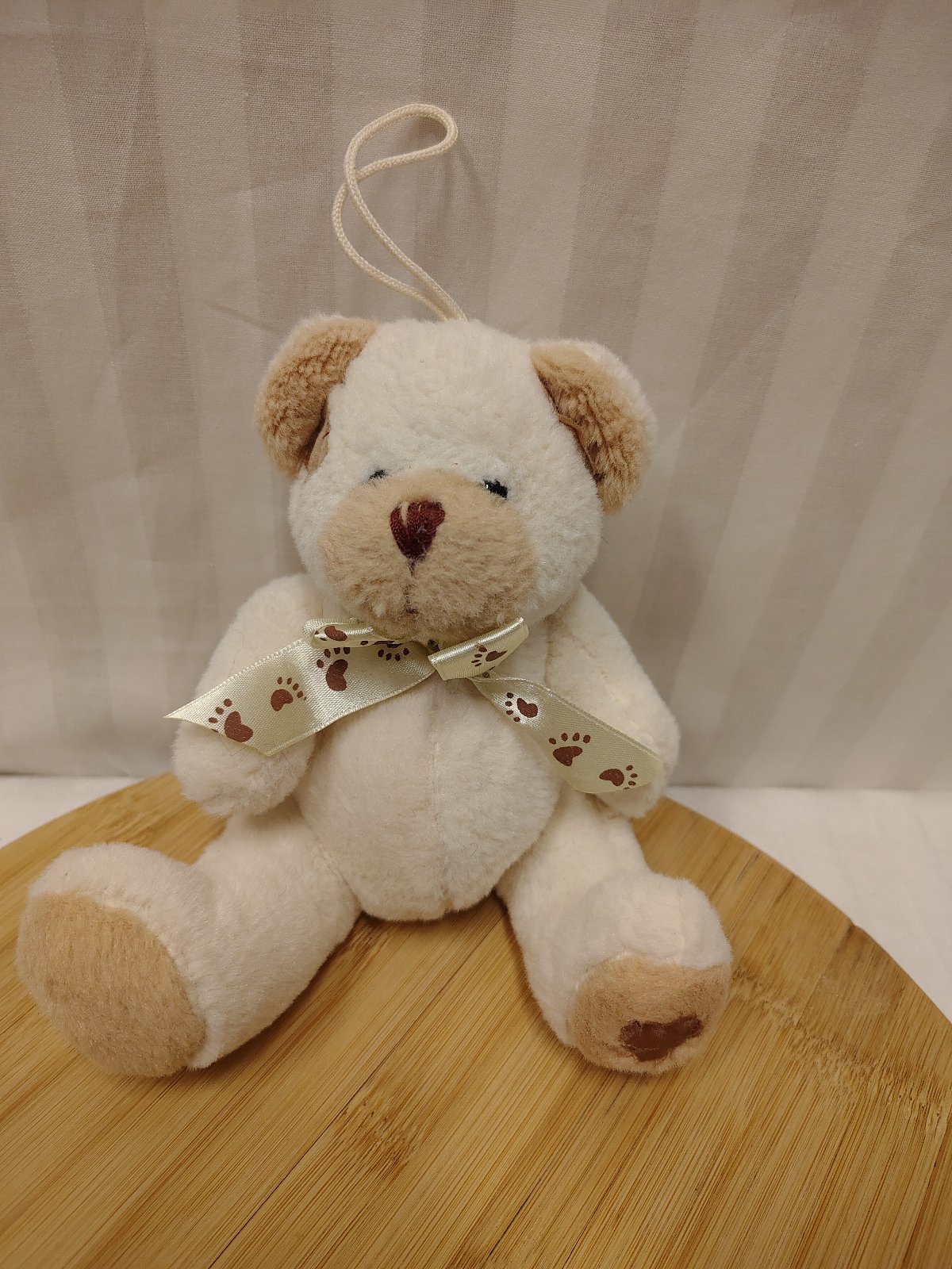 Plyšový krémovo hnedý medveď s mašlou, 16 cm