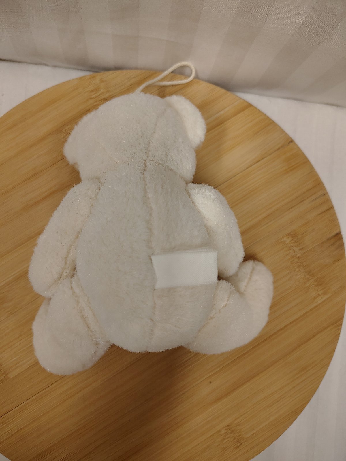 Plyšový krémovo hnedý medveď s mašlou, sediaci, má malé oči, okolo krku má mašľu, vyrobený z kvalitného jemného a mäkkého plyšového materiálu,