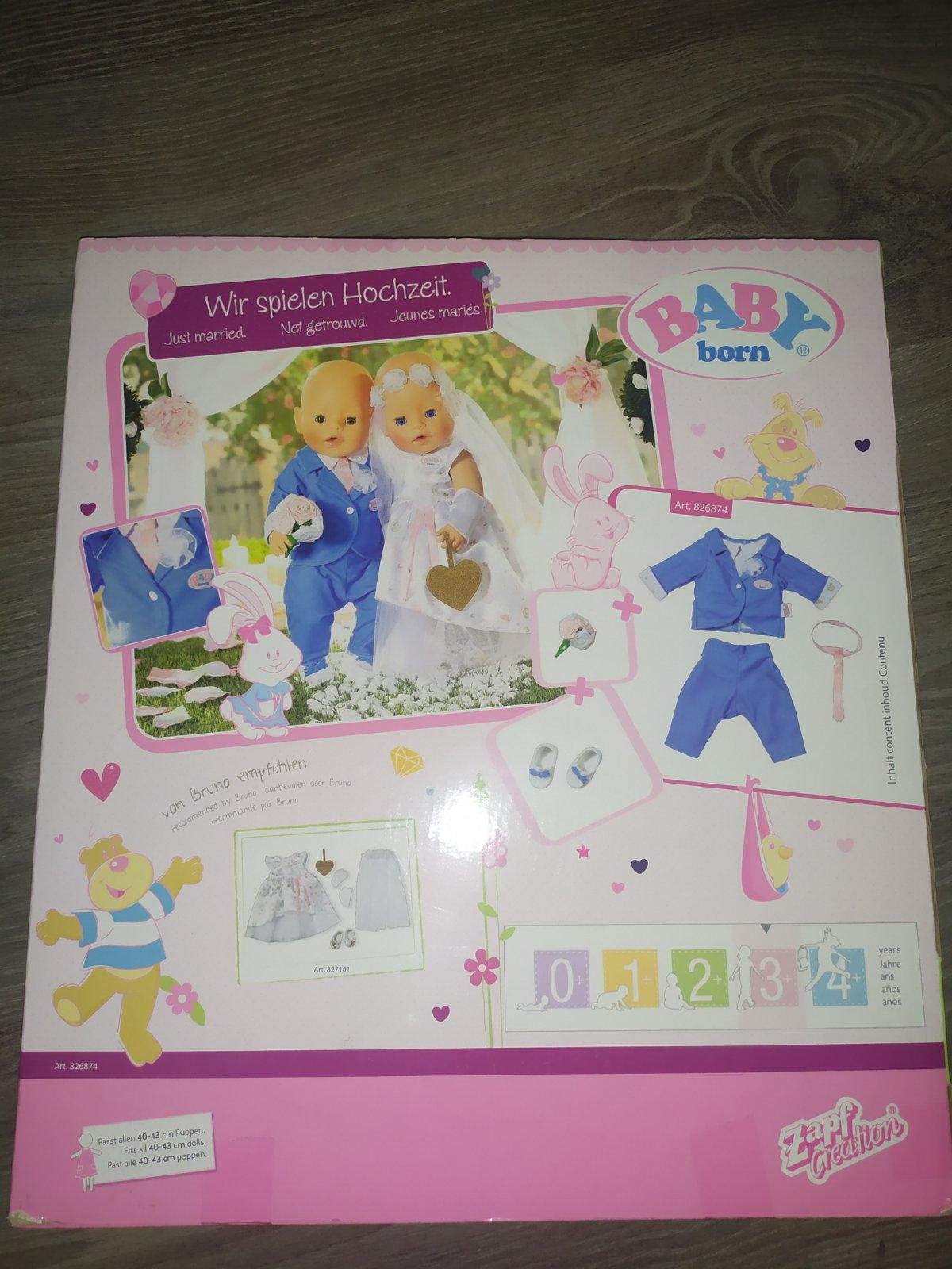Nove zabalene oblecenie pre babiky Baby born v style spolocenske oblecenie oblek pre zenicha . Zenich ma k dispozicii aj kyticku pre nevestu , kravata , topanky