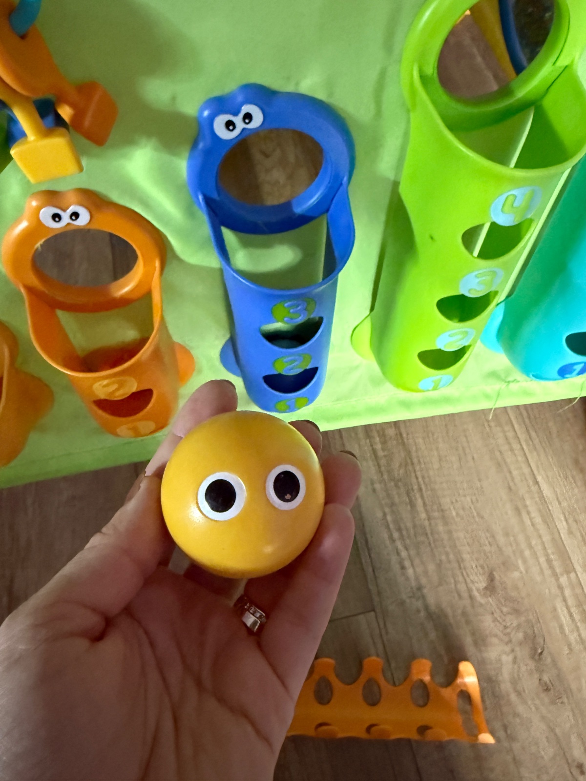 Aktivity: tunel na gulicky, otocne koleso, kluce tvary na otvaranie dvierok, hrkajuce gulicky a mnoho ineho,,