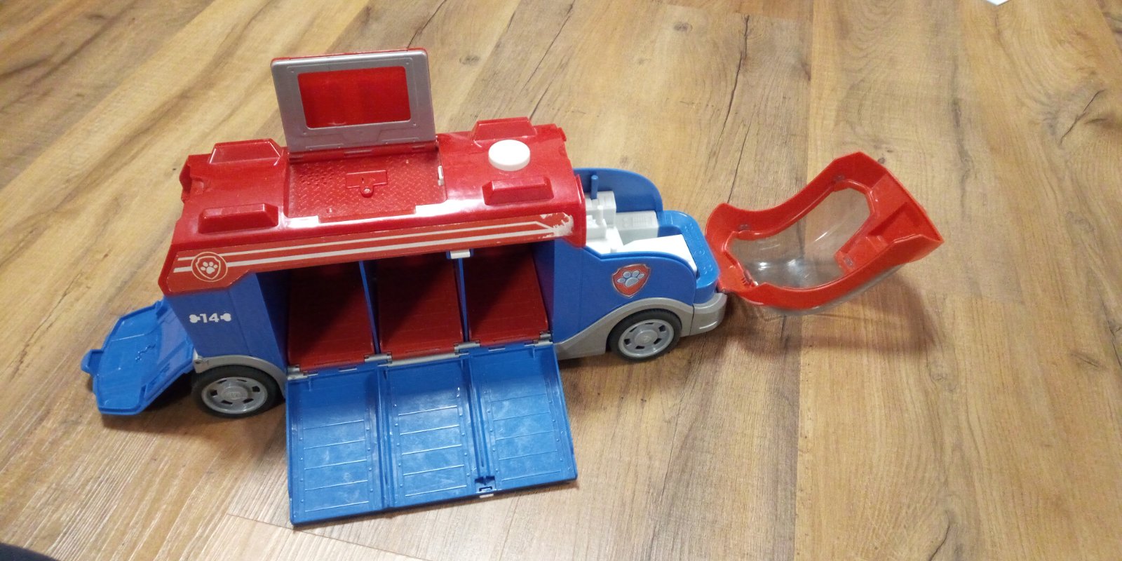 Paw patrol autobus, vydáva zvuky, hraný, stav ako na foto, samolepky suchnute, inak plne funkčný a pojazdný.