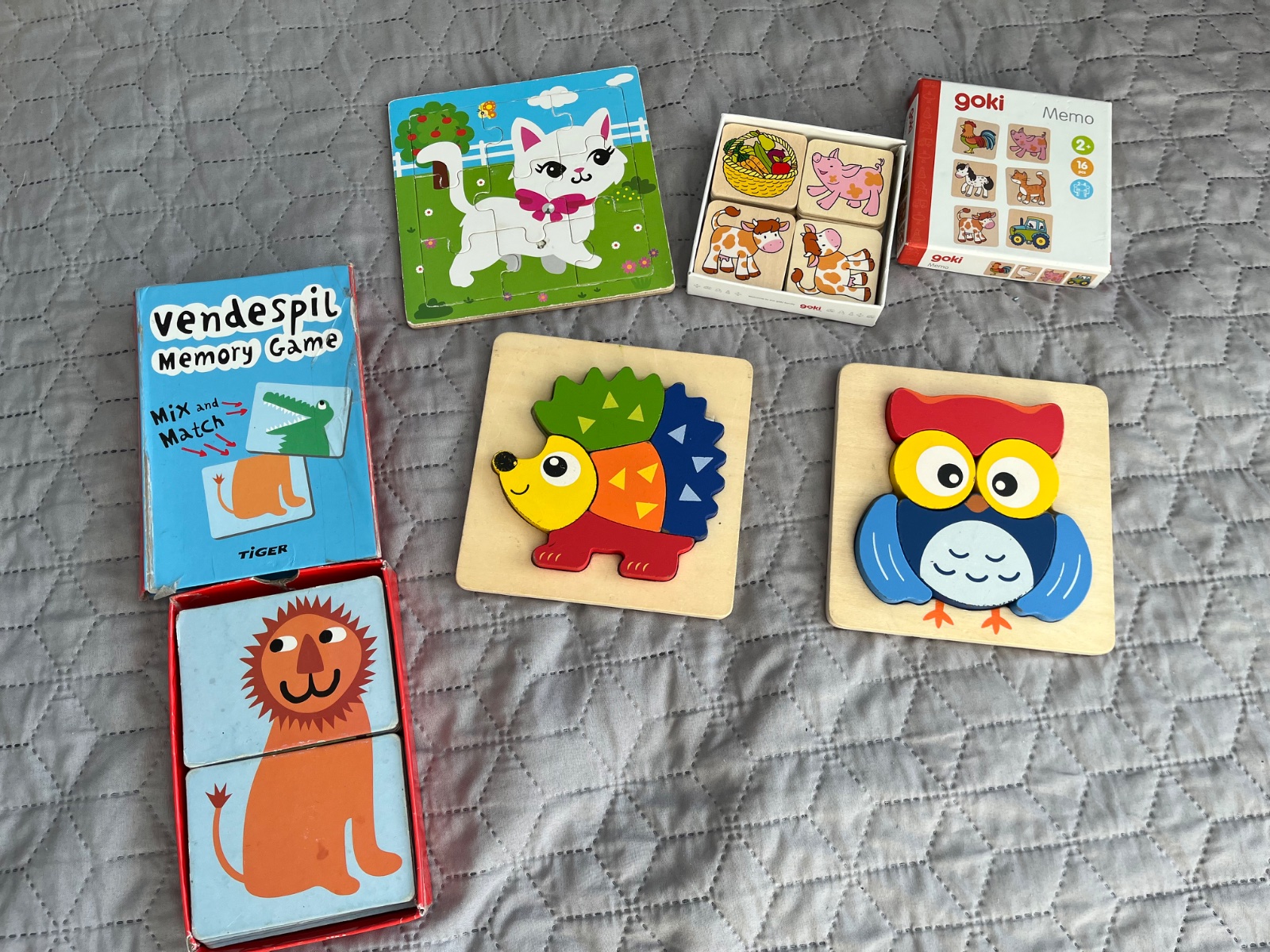 Prve puzzle, vkladacky a drevene pexeso, vsetko spolu. Odber BB alebo plus postovne.
