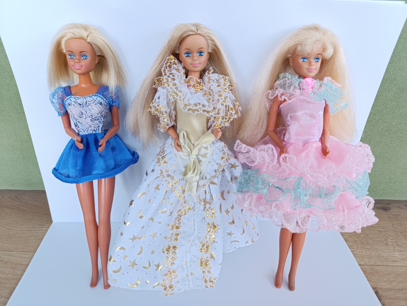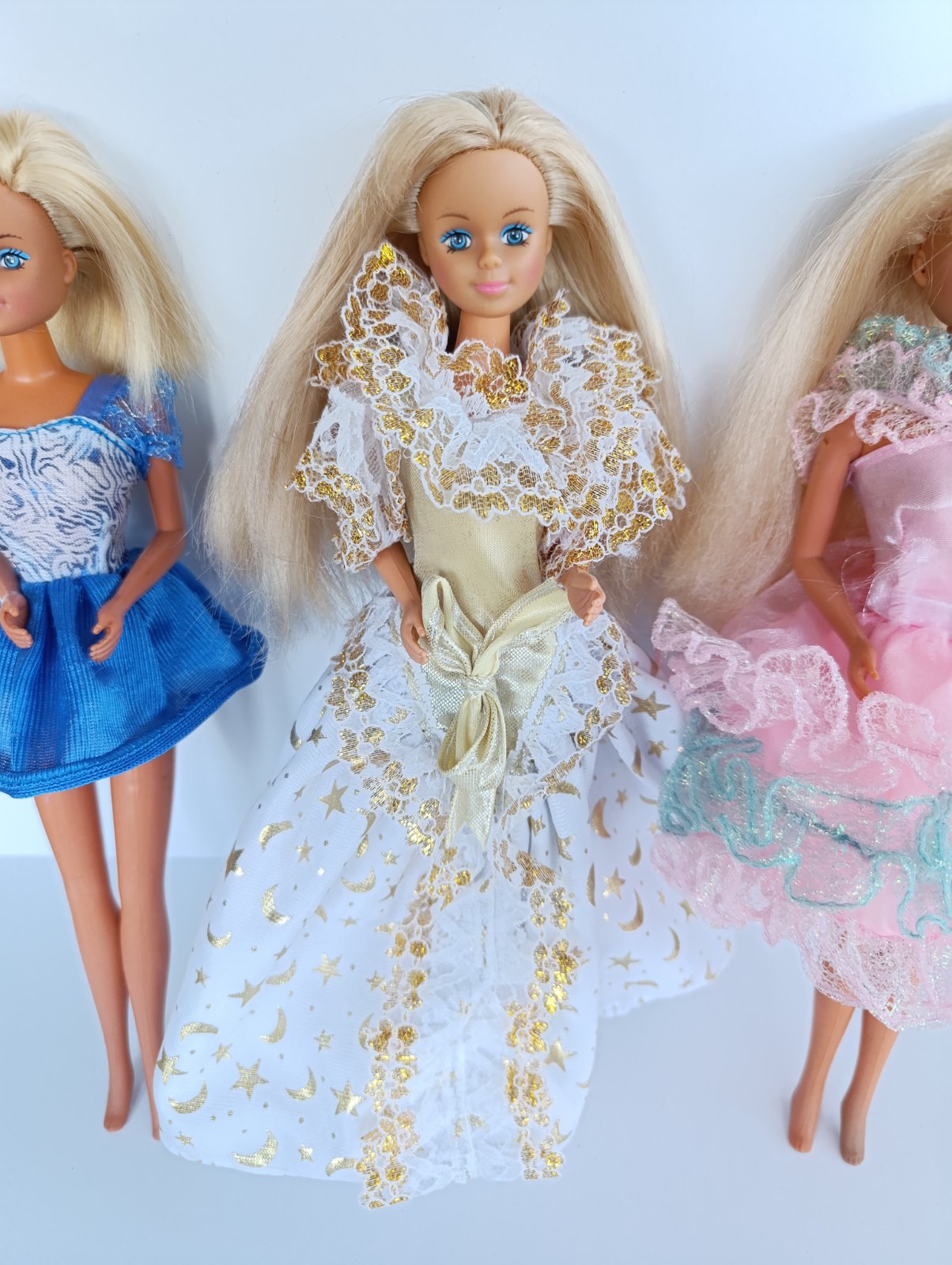babiky typu Barbie, original Petra, saty maju nejake poskodenia, jedny treba zasit ale stale funkcne, babiky maju znamky pouzivania, nejake chyby a flaky sa najdu ale stale funkcne ziadne zlomeniny alebo praskliny. Predam len spolu + postovne
