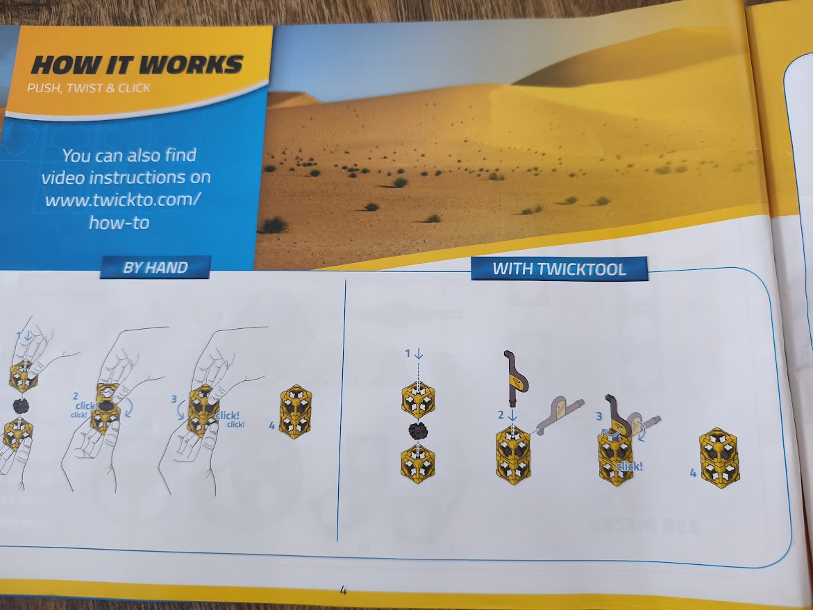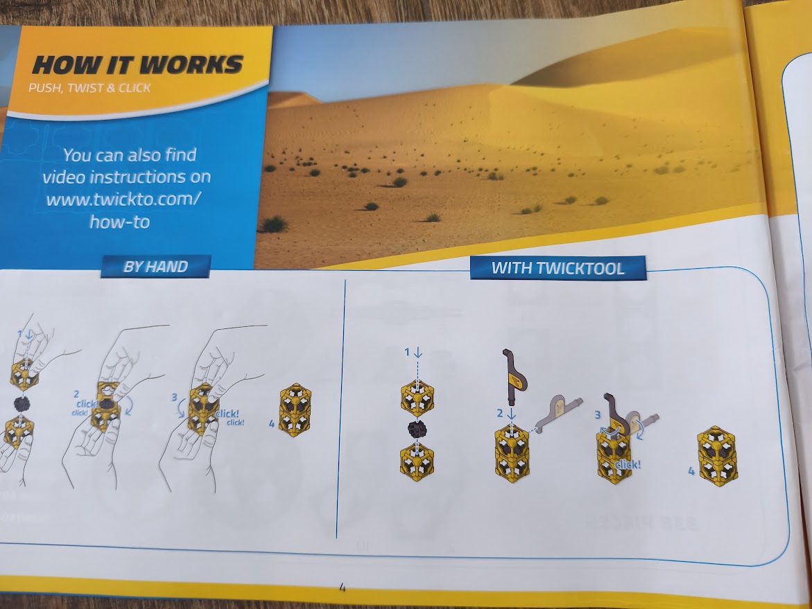 So stavebnicou Twickto si deti rozvíjajú talenty ako je kreativita, priestorové povedomie a technické pochopenie. Okrem toho je Twickto skvelý na spoločné hranie. Postav si unikátne vozítka púštnu štvorkolku, Mars Rover alebo bager každý model je navrhnutý tak, aby ho deti nielen zostavili, ale aby sa s ním mohli tiež hrať. Tri modely podľa návodu, štvrtý po zadaní špeciálneho kódu na stránkach výrobcu. Fantázia nemá hranice, takže môžete vytvoriť, čokoľvek chcete. Unikátna stavebnica navrhnutá a vyrobená v Holandsku. Vyrobena z veľmi kvalitného plastu.